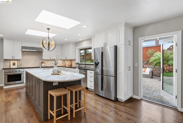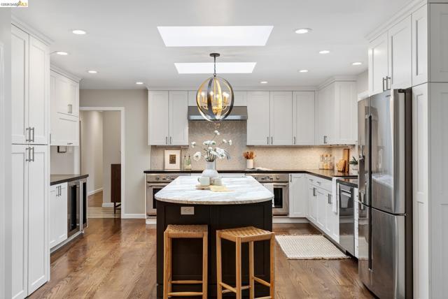 Privately set on a tranquil cul-de-sac, 261 Silverado Court is a masterfully renovated mid-century ranch offering refined single-level living with uncompromising quality. Three spacious bedrooms and two fully redesigned spa-inspired baths blend timeless architecture with elevated modern finishes. Expansive living and family rooms provide exceptional scale for entertaining, while a formal dining room with stunning custom built-ins creates an elegant gathering space. The showstopping chef’s kitchen pairs Calacatta Gold marble with rich soapstone countertops, custom cabinetry, and a full Thermador appliance suite including dual ovens, induction cooktop, and a double beverage center for wine and entertaining. A light-filled breezeway to the garage offers the perfect flex space for a private home office or studio. Comprehensive upgrades include all new windows and doors, a modernized electrical system, and enhanced insulation in ceilings, walls, and floors for remarkable efficiency and comfort. Pest clearance complete. Meticulously landscaped grounds with a tranquil waterfall create a private garden retreat. Turnkey. Elevated. Effortless. Single-level luxury at its finest.