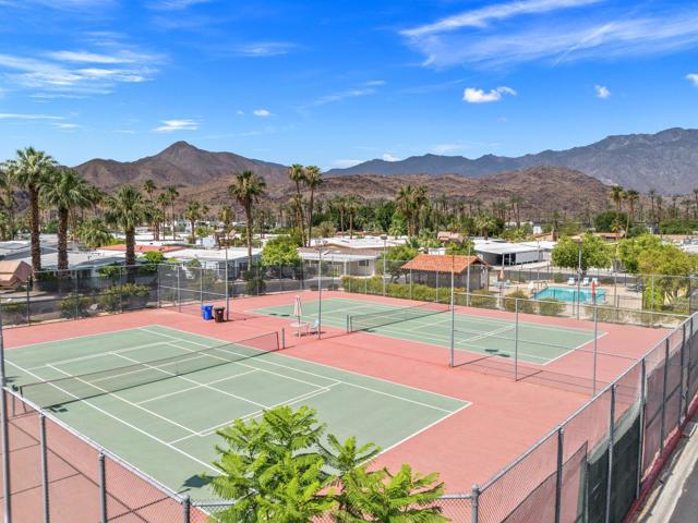 New Roof as of 2/28/26. El Dorado Palms. You Own the Land. Central to everything, walk to Traders Joes, Restaurants, Shopping and easy access to Airport. Casino, Dining, Shopping.You will love this Quintessential Palm Springs Home. Tasteful colored walls, LVP flooring, tile in bath. Covered Patio with tile and desert landscape, fenced for pets, great area for all season entertaining. Bedrooms are on either side, for privacy, extra large Laundry area with sink and storage. Arched doorways, skylights, you are going to be impressed with this home.55+ Active Community with HOA that covers Clubhouse, gym, two Pool/Spa, Tennis courts, RV parking, trash and water included. This one will say to you and friends, ''I live and love Palm Springs.''