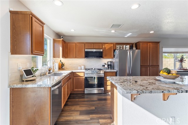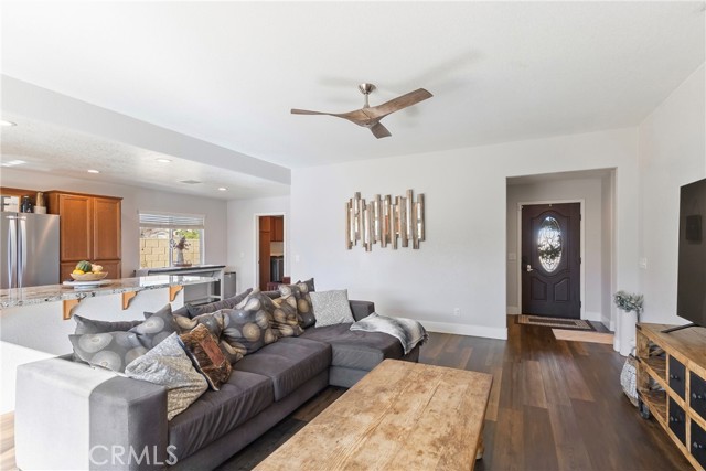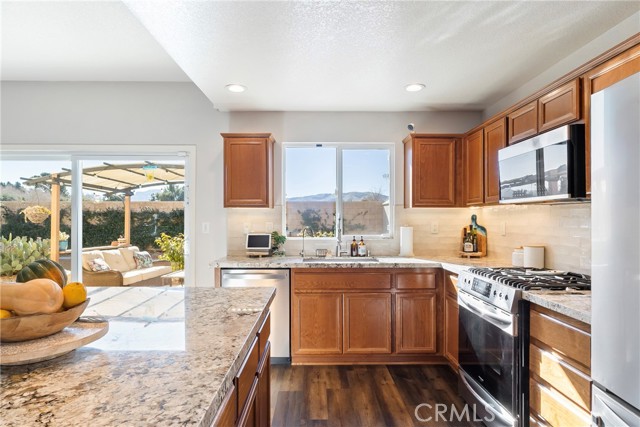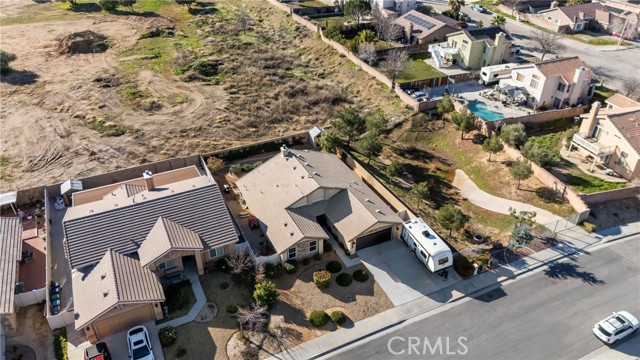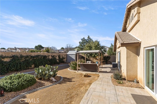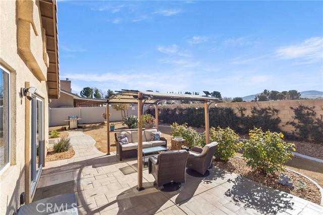 Rare Privacy & Mountain Views, Smart Home in Quiet Neighborhood!!! Welcome to 2048 Thistle Ave in Palmdale, a beautifully upgraded four-bedroom, two-bath home set in a quiet, well-kept neighborhood, offering rare privacy with no neighbor to the right or behind and serene views of the Angeles National Forest mountains. Inside, you'll find a modern, open layout with luxury vinyl plank flooring in the main living areas, waterproof padded carpet in the bedrooms, elegant 6-inch baseboards, and upgraded lighting that creates a clean, cohesive look. The kitchen features granite countertops, a quartz undermount sink, custom tile backsplash, color-matched switches and outlets, smart under-cabinet lighting, and fingerprint-resistant stainless steel appliances including a counter-depth refrigerator. The living room centers around a cozy gas fireplace with a black interior and crushed glass detail. Both bathrooms offer granite counters and upgraded fixtures, while the primary bedroom includes a walk-in closet and smart ceiling fan. This home includes several smart features, such as active AT& T fiber internet, Philips Hue lighting, Zigbee smart switches, a Nexx smart garage door opener, ADT security system with outdoor cameras, Ecobee smart thermostat, and a smart smoke detector. Sellers are open to leaving the ADT system, Philips Hue Bridge and bulbs, SmartThings Hub, and Google Hub. The backyard is thoughtfully landscaped with stamped concrete, flagstone accents, mature plantings, and mountain views. Sellers are open to leaving the pergola with solar lighting, outdoor furniture, barbecue, and fire pit. Additional features include a 50-amp RV/EV hookup, a gated side yard that acts as a dog run or play area, spacious two-car garage, attic and shed storage, and a hot water heater replaced in 2024 and maintained annually. Located near parks, shopping, schools, and the 14 Freeway, with the community mailbox conveniently located just across the street.