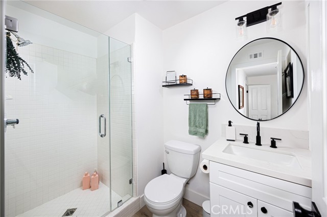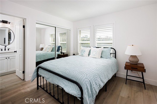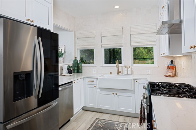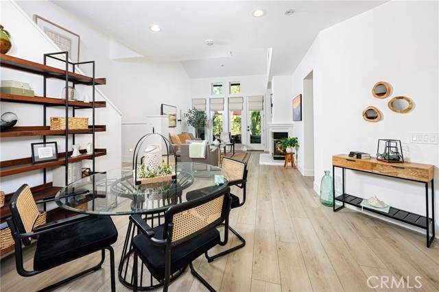 Elegant two-story Mediterranean-style townhome located in the desirable gated community of Cameray Pointe in Laguna Niguel. This extensively remodeled 1,643 sq ft residence built in 1991 blends modern sophistication with coastal charm. Upon entry you’re welcomed by oak-style luxury vinyl plank flooring leading to a bright and spacious dining area and convenient main-level guest bath. The inviting main living area showcases soaring 12-foot vaulted ceilings, an idyllic gas fireplace with tile surround, and abundant natural light. The thoughtfully updated kitchen features crisp white cabinetry, quartz countertops, farmhouse-style sink, and breakfast nook. A full LG stainless steel appliance package—including 4-burner gas range, built-in microwave, dishwasher, and refrigerator—completes the perfect culinary space. Upstairs, the expansive owner’s suite offers a tranquil retreat with a cozy sitting area, gas fireplace, and Juliet balcony. The spa-inspired bathroom boasts a freestanding soaking tub, walk-in shower with designer tile, dual vanities, and generous closet space. The secondary bedroom includes its own en-suite bath with a stylish walk-in shower, ideal for guests or extended stays. Enjoy relaxed coastal living outdoors on the private patio with solar lighting and BBQ space—perfect for entertaining on warm California evenings. Additional highlights include full-size washer and dryer, sprinkler system, central A/C, gas-forced air furnace, two-car garage, and access to community amenities including pool and guest parking. With its blend of luxury, comfort, and gated security—all just minutes from coastal trails, boutique shopping, and top-rated schools—this property embodies the best of Southern California living.