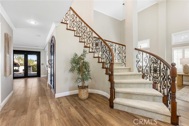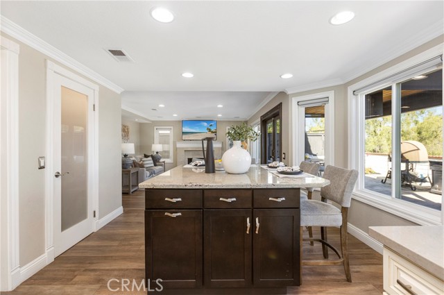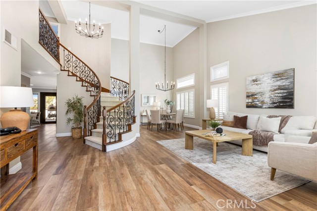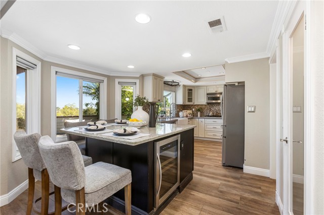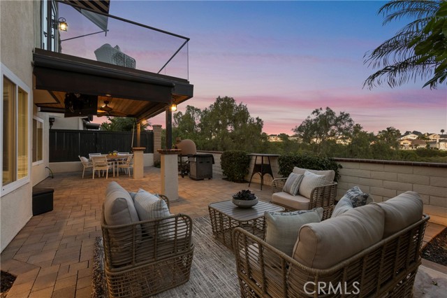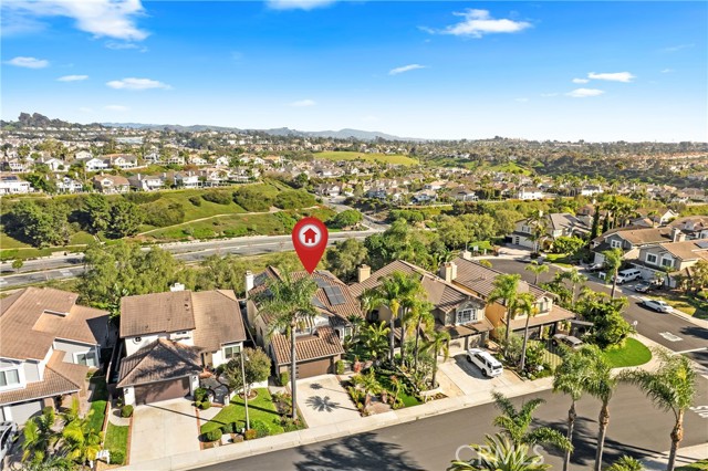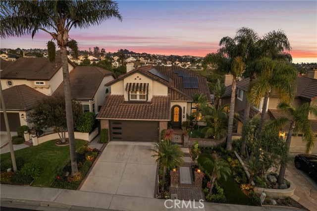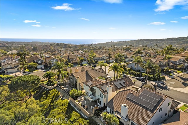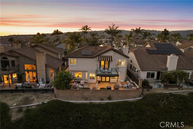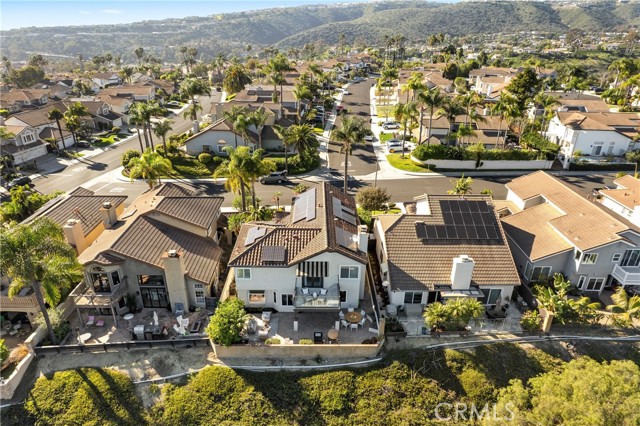 Welcome to this beautifully updated four bedroom, three bath home that blends modern upgrades with timeless comfort. Thoughtfully designed for today’s lifestyle, the versatile floor plan features a highly desirable downstairs bedroom and full bath, ideal for guests, multigenerational living, or a private home office. The former step down living room has been filled in to create a seamless and current layout with an open feel throughout the main level. Elegant wood look tile flooring spans the entire downstairs, offering both style and durability. Natural light fills the home and highlights the expanded kitchen, which has been tastefully upgraded with quality finishes, generous counter space, and a large island with seating that is perfect for casual dining and entertaining. Upstairs, you will find spacious secondary bedrooms and a primary suite with an enhanced and enlarged balcony with sweeping views and upgraded awning. The beautiful staircase with iron railing creates a stunning focal point and adds a touch of sophistication to the interior. Step outside and enjoy views of the surrounding hills and scenery. The expanded backyard offers ample space for gatherings, play, or quiet relaxation and the large balcony above provides some nice shade. A private wine cellar adds charm and character for those who love to entertain. The enclosed front yard is a welcoming retreat with lush landscaping and a putting green that provides both beauty and fun. This exceptional property offers comfort, thoughtful upgrades, and picturesque views in a setting that truly feels like home. The association offers a community pool and spa with outdoor showers, a full tennis/sport court, and a park area. The home is within walking distance to the California Distinguished School John Malcom, and only 1.5 miles from Salt Creek Beach, with convenient walking trails for hiking or biking directly to the shore. Enjoy easy access to Monarch Beach Golf Links and two world-class five-star resorts, the Waldorf Astoria and The Ritz Carlton. The nearby Dana Point Harbor going through a major renovation is also a short drive or ebike away.