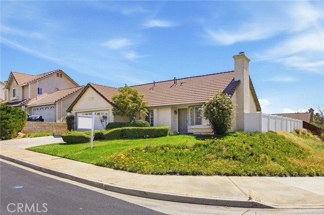 Welcome to a charming single-story home located within the highly sought-after Sunnymead Ranch community. Featuring three bedrooms and two bathrooms, this home sits on a desirable corner lot and offers a functional layout with great potential. Built in 1988 and set on a 7,841 sq ft lot, it combines comfort, space, and opportunity. The inviting curb appeal includes a well-maintained lawn, trimmed bushes, and white vinyl side fencing. A spacious driveway and two-car garage provide everyday convenience. Inside, the bright living room features multiple front-facing windows, laminate wood-style flooring, and a classic brick fireplace. The space flows into the dining area and kitchen, where sliding glass doors and additional windows bring in natural light. The kitchen offers natural wood cabinetry, white tile countertops, and a functional layout, ready for your personal updates. All bedrooms are carpeted and comfortably sized, while the bathrooms feature matching cabinetry and clean white countertops. The backyard offers plenty of space to create your ideal outdoor setting, whether for entertaining, relaxing, or future enhancements. As part of Sunnymead Ranch, residents enjoy access to a private lake, pool, spa, clubhouse, fitness center, and walking trails. Conveniently located near shopping, dining, parks, and schools, this home is a great opportunity to own in one of Moreno Valley’s most established communities.