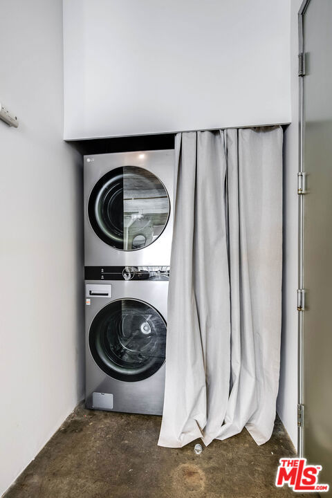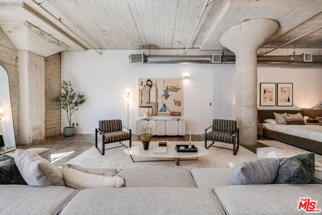 Toy Factory Lofts, a highly coveted Live/work loft community in the vibrant Arts District of DTLA. This remarkable Penthouse loft, a rare find, boasts an expansive open floor plan with soaring 12-foot ceilings, original 1924 concrete floors and columns combine the historic features with modern living. The loft is illuminated by oversized industrial-style windows, recently upgraded with new glass and motorized shades, facing south to invite abundant of natural light throughout the space. Recent upgrades include kitchen appliances: Bosch gas stove, Samsung refrigerator and dishwasher, and a large LG front loading stackable washer-dryer. Resort like building amenities enhance the living experience, offering a secure lobby with a 24-hour doorman, a rooftop pool surrounded by a sun deck and a cozy fire pit that provides breathtaking views of the DTLA skyline, 6th street bridge and snow capped mountains. Enjoy a communal deck with lush green spaces, barbecue areas, and a two-story gym. Residents will benefit from an assigned, indoor, secured parking space in the attached private garage. Toy Factory Lofts is located just steps away from Hank's Organic Market, restaurants like Camila, Bestia, Bavel, The Soho House, DTLA Row Factory, The Bike Shed Moto Co, and galleries include Hauser & Wirth, ICA LA and many more. Also located 2 blocks from Warner Music and Spotify offices with easy access to the 5, 10 & 101 FWYS. This penthouse loft offers the ultimate freedom to live, create, and work from home in a true industrial-chic setting a rare opportunity in one of DTLA's most iconic buildings.