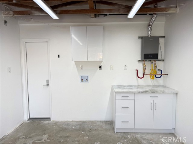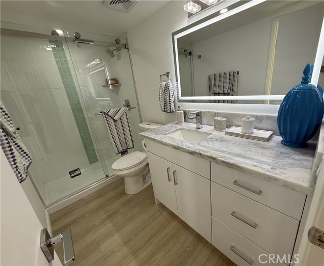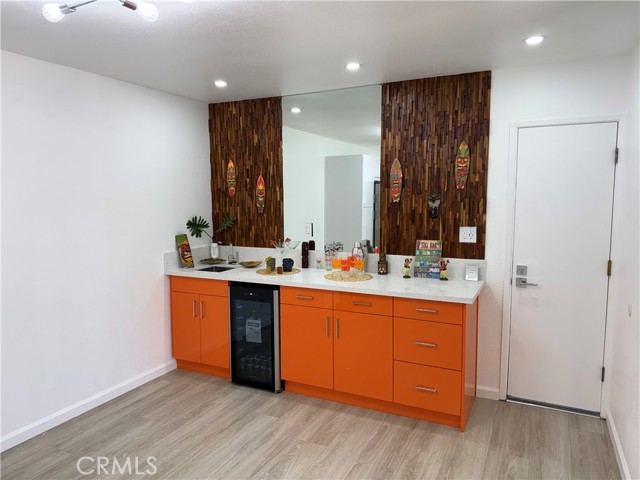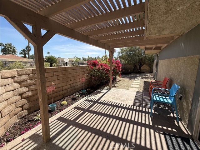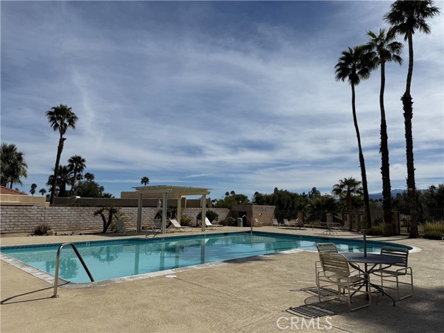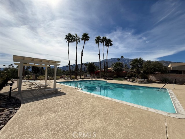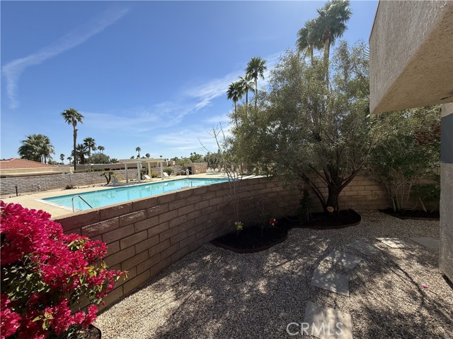 Completely remodeled from top to bottom and never lived in since the renovation. This Palm Springs condo has undergone a true full-scale remodel with high-quality finishes throughout—everything is brand new and no expense was spared. The home features a brand-new remodeled kitchen with modern Euro-style cabinetry, marble countertops, a glass tile backsplash, and all-new smart app-enabled high-end Samsung appliances, including a dual oven and microwave oven. Just off the kitchen is a custom-designed tiki bar with a wine cooler and sink, creating a unique built-in entertaining space. Luxury vinyl flooring and dimmable LED lighting run throughout the entire condo. The bathroom was completely remodeled with brand-new tile, vanity, and lighting. All new energy-efficient windows and patio doors enhance comfort and efficiency, and the home also includes a brand-new tankless water heater. The fully redesigned yard includes a large private patio located near the pool. Located in one of the rare Palm Springs condo communities offering private garages, this home also includes a finished garage with a new insulated garage door. Community amenities include eight swimming pools and spas, tennis courts, and pickleball, and the condo is in a great location right next to a quiet pool. This is a true turnkey, never-lived-in residence showcasing a complete, high-quality remodel throughout.