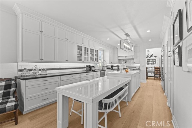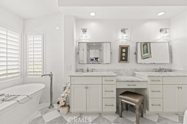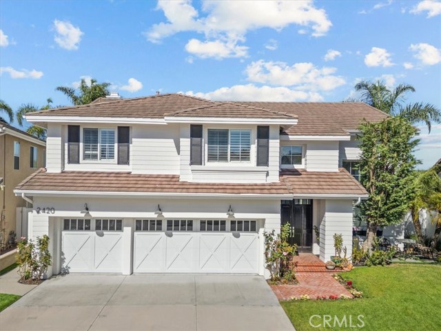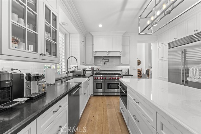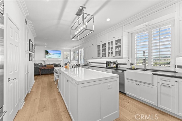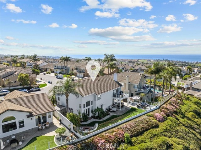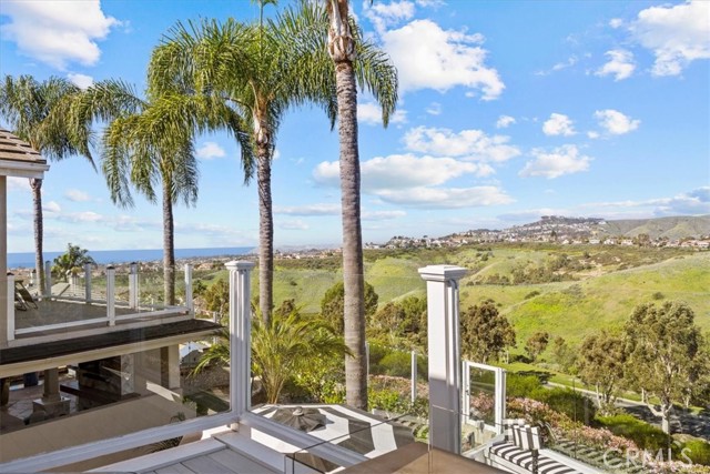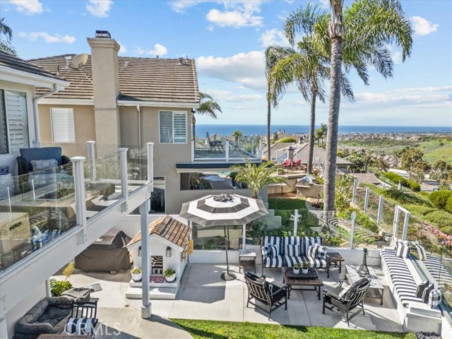 Imagine a modern farmhouse masterpiece with spectacular ocean, mountain & city-light views in Guard-Gated Marblehead. Meticulously transformed with approximately $1M in high-end renovations, this 4 bedroom extraordinary coastal residence is turnkey. You will love the sweeping blue-water vistas of Catalina Island, dramatic sunsets, protected green hillsides, and dazzling city lights at night. The interior showcases a refined modern farmhouse aesthetic with new wide-plank white oak flooring throughout. Solid wood interior doors with upgraded hardware, new baseboards, lighting, and switches enhance the home, which has also been fully repiped with PEX. The designer kitchen has been completely reimagined with honed granite perimeter counters and an oversized quartzite island with bar seating. Top-of-the-line appliances include a Sub-Zero refrigerator, Wolf range and microwave, and an English-style porcelain farmhouse sink. Custom solid-wood cabinetry with soft-close doors, dovetail construction, and thoughtful pull-outs creates a chef’s kitchen that is as functional as it is beautiful. The floorplan offers a desirable downstairs guest bedroom and beautifully updated full guest bath with custom finishes. The primary suite and generous balcony is a private retreat oriented to maximize the view, showcasing Catalina, ocean sunsets, green hillsides, and city lights. The spa-inspired bath features custom marble flooring, a custom sink, new frameless shower doors, and designer fixtures. An upstairs laundry room with added custom storage is conveniently located nearby. All closets have been rebuilt with high-end custom cabinetry and organization systems. Secondary bedrooms are spacious, stylishly updated, and filled with natural light. The backyard is ideal for relaxing and entertaining, offering a lush grassy area, a fire pit positioned for sunset views, and an above-ground jacuzzi for evenings under the stars. The 3-car garage mirrors the home’s quality with new farmhouse-style doors, SwissTrax flooring, custom cabinetry, and two 240V EV charging outlets—one inside and one exterior. Blending timeless farmhouse style with extensive upgrades and some of Marblehead’s most captivating views, this residence presents a rare opportunity to own a truly turnkey home in one of San Clemente’s most desirable guard-gated communities—just a short walk to Marblehead School & Park with lighted tennis and basketball courts, playground, and scenic trails.