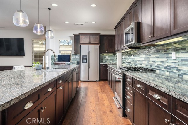 House has been exceptionally maintained. If you are looking for a house in this neighborhood, this is the one you want to buy. Hardwood floors throughout. Built in cabinets and shelves throughout the living area, master bath, and laundry room. Has an attached patio (A.K.A California Room) with built in fans and speakers. Back yard is fully landscaped and hardscaped with a built in fire pit. Built in speakers in the living room as well. This is definitely THE ONE.