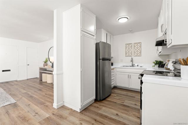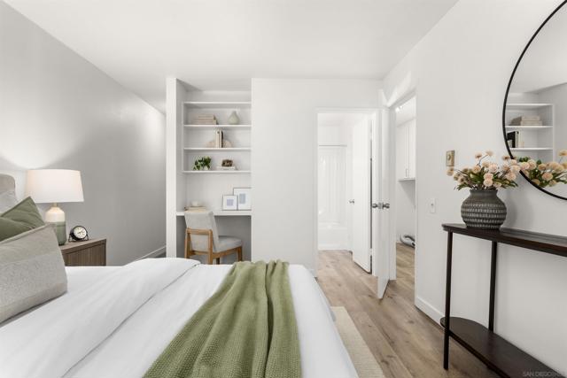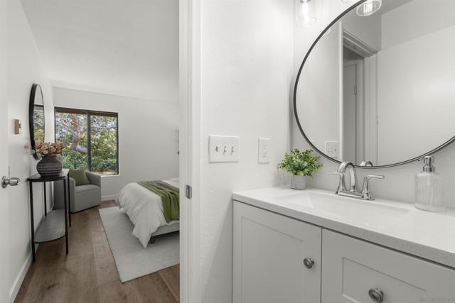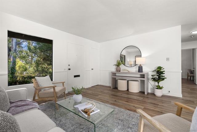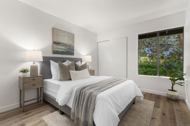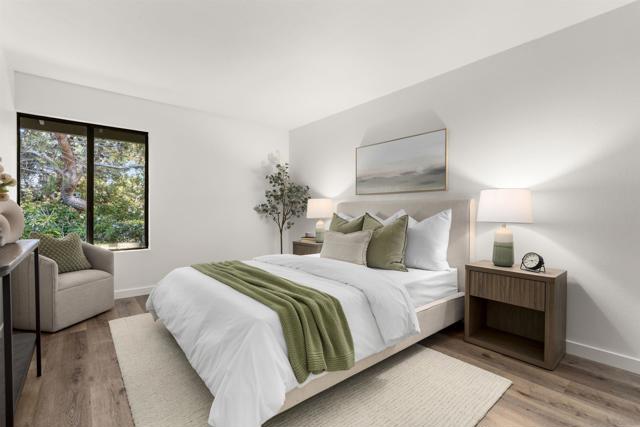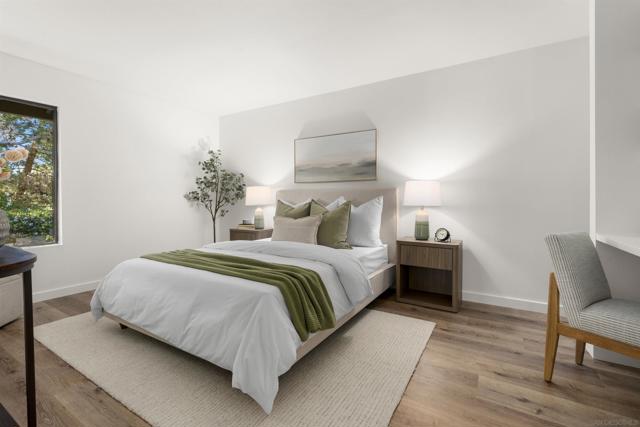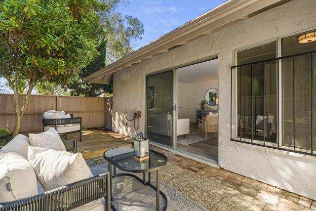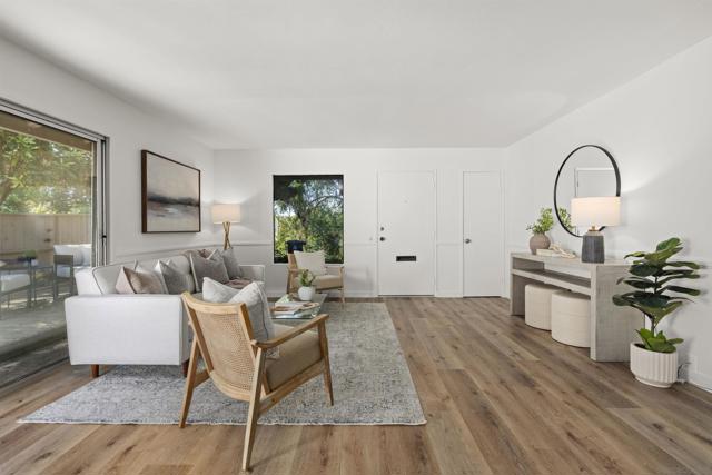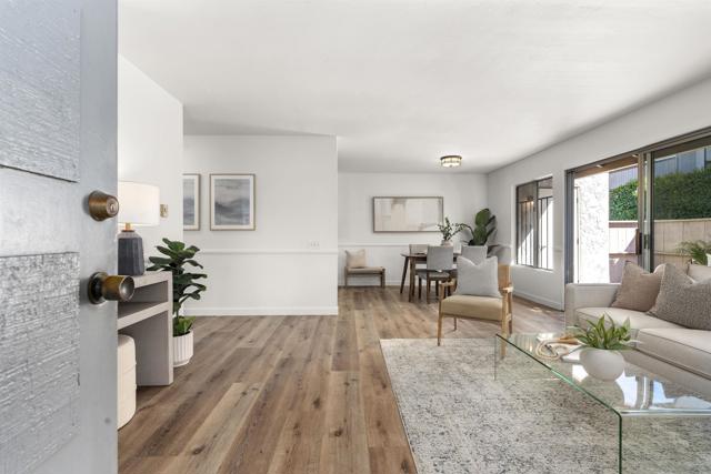 Welcome to this beautifully updated end-unit residence in the highly desirable Genesee Vista community of La Jolla. Thoughtfully renovated and move-in ready, this single-level home offers a bright, open-concept layout enhanced by abundant natural light and modern finishes throughout. The spacious living area opens seamlessly to a private enclosed patio with deck, an ideal extension of the home, perfect for relaxing evenings or effortless entertaining. New luxury vinyl plank flooring runs throughout, complementing the redesigned bathroom featuring a sleek contemporary vanity and updated finishes. The convenience of in-unit laundry adds to the home’s comfort and functionality. Ideally situated near UCSD, premier shopping, dining, and San Diego’s world-class beaches, this turnkey residence delivers the perfect balance of style, location, and low-maintenance La Jolla living.