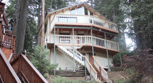 JUST LISTED!!! Take it easy at this unique and tranquil cabin that sits on the edge of the San Bernardino National Forest! Conveniently located in between Lake Arrowhead and Big Bear Lake in beautiful Running Springs! This 2 bedroom 2 bath home has amazing views of the forest. It features an open floor plan upstairs for entertaining guests with high beamed vaulted ceilings, tall windows, and lots of natural light. There is a total of 4 separate decks, a separate storage room that can be converted into a 3rd bedroom, a parking carport, laundry room, and just a short drive to Snow Valley Ski Resort! Very central to the main town, highway, and so much more. This home was also an active vacation rental that did very well! Do not miss out on this one!