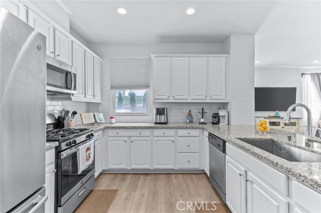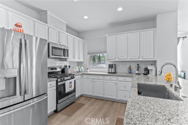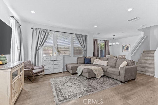Modern, Low-Maintenance Living with Paid Solar in a Central Ontario Community If you’re looking for a home that feels open, modern, and easy to live in, this well cared for end-unit condo is a great fit. Built in 2019, this 3 bedroom, 2 bathroom home offers just over 1,550 square feet of thoughtfully designed space, ideal for a first-time buyer or someone looking to downsize and enjoy a lower-maintenance lifestyle. The main level features a wide open layout where the kitchen overlooks both the living and dining areas, making the space feel connected and inviting. The kitchen is clean and functional with white soft close cabinetry, granite countertops, a custom tile backsplash, a large pantry, and a stainless steel KitchenAid appliance package. Laminate wood flooring, recessed lighting, and dual pane energy efficient windows add to the modern feel. Upstairs, the primary bedroom offers a comfortable retreat with a large walk in closet, dual sinks, updated fixtures, and a walk in shower. Two additional bedrooms are generously sized and share a full bathroom with a shower over tub, offering flexibility for family, guests, or a home office. The home includes an individual laundry room, extra storage, a tankless water heater, and a fully paid 9 panel solar system to help keep utility costs down. There is no Mello Roos, and the exterior of the community is in the process of being freshly repainted by the builder. The unit is conveniently located near green space and parking, with easy guest parking throughout the community. Residents enjoy access to a resort style pool, BBQ area, and park-like greenbelts that are well used when the weather is nice. The community is family oriented, well maintained, and has a low HOA. The location is central to shopping, dining, and everyday essentials. While close to the freeway, outside noise is minimal once inside. As an end unit with only one shared wall, the home offers added privacy. A move-in ready opportunity that combines modern living, cost savings, and everyday convenience.