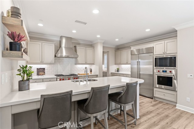 Situated in the prestigious Aqua enclave—ocean side of the freeway—in Sea Summit in San Clemente, this detached single-family residence offers the very best of contemporary coastal living. Designed with an open-concept layout ideal for both upscale entertaining and relaxed everyday living, the home seamlessly blends sophistication with comfort. Just steps from a variety of restaurants, a full shopping center, and one of San Clemente’s most scenic ocean-view walking paths, residents also enjoy convenient access to the San Clemente Trolley—a free local service with routes to downtown, the pier, and T-Street Beach. This thoughtfully upgraded residence showcases high-end finishes throughout, including quartz countertops, luxury vinyl flooring, custom wood shutters, power shades, built-in surround sound speakers and a whole house water filtration system. The spacious family room flows effortlessly into a true chef’s kitchen, now enhanced with premium Wolf appliances and a Sub-Zero refrigerator, anchored by an oversized island ideal for entertaining and hosting holiday gatherings. A generous laundry room, along with a butler’s pantry and dedicated coffee bar, enhances everyday functionality on the main level. Upstairs, two secondary bedrooms share a full bath, offering privacy and comfort for family or guests. The primary suite serves as a tranquil retreat, complete with a spa-inspired bath, soaking tub, oversized walk-in shower, and refined finishes. Step outside to a backyard designed for both relaxation and entertaining, featuring custom hardscaping, a water feature, outdoor fire pit, and a separate courtyard space—all set against panoramic views of the Pacific Ocean. Additional highlights include epoxy garage flooring and overhead storage, upgraded French doors to the courtyard, gas lines for fire pots in both the backyard and courtyard, an EV charger, and a whole-house water filtration system. Residents enjoy exclusive access to The Summit Club, offering a resort-style pool, spa, fitness center, and clubhouse, along with over four miles of scenic coastal trails. Perfectly located just minutes from Interstate 5, world-class beaches, and within walking distance to Shorecliffs Middle School, this home embodies the ultimate in luxury, location, and laid-back coastal lifestyle.