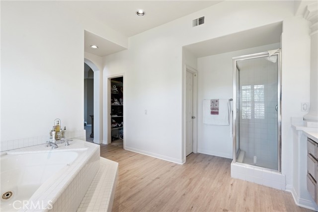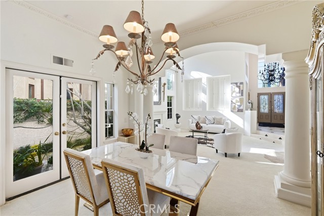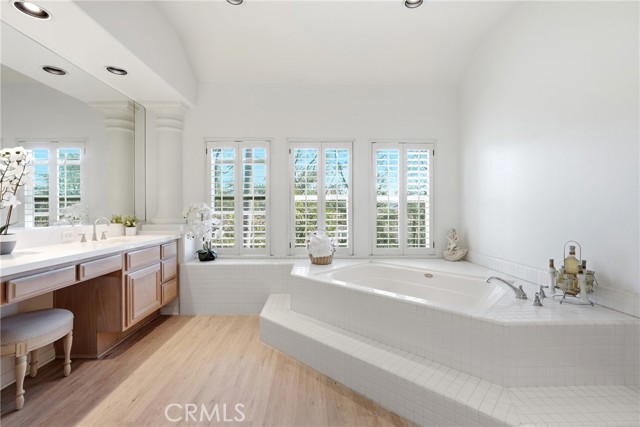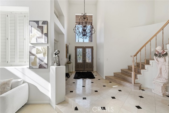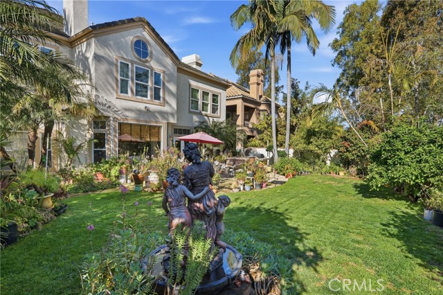 Welcome to one of the most desirable locations in Moulton Ranch, featuring a beautiful rose garden and exceptional curb appeal. This 4,000 sq. ft. custom home sits on a 7,000 sq. ft. lot and offers an impressive open-flow layout. The residence includes two master bedrooms—one on the main level and a dedicated office. Enjoy vaulted ceilings, a marble-entry foyer, an upstairs bonus room, and a formal dining room that opens to a spacious family room with a full bar. The kitchen features hardwood cabinetry and marble countertops overlooking peaceful natural views. Additional highlights include a luxurious living room with a fireplace, wood floors, custom crown molding, and a master retreat with two walk-in closets and a Jacuzzi tub. A laundry room and a three-car garage complete this exceptional home.