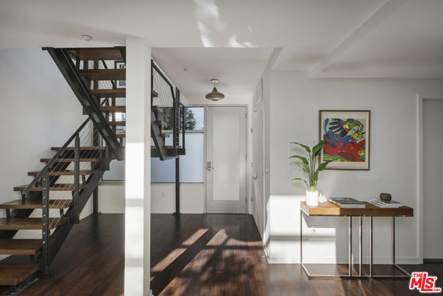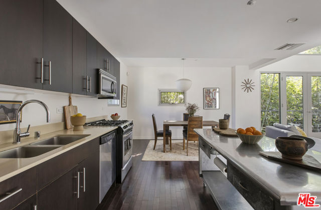 Between the Myra Avenue Bridge and the Manzanita Street gardens stands 4111 Sunset Blvd. Designed and constructed in 2007 by Rothenberg-Sawasy Architects, the Sunset Silver Lake Lofts remain one of the most sought-after Live/work buildings in Silver Lake. Just steps from Sunset Junction, you're within walking distance of some of the neighborhood's best Erewon, Tartine, Intelligentsia, Sweetgreen, Pine & Crane, and La Colombe. This one bedroom, two-bath open-concept New Yorkstyle loft offers the feel of downtown Manhattan in the heart of Silver Lake. This unit could easily be turned into a two bedroom by adding a few stem walls and doors. With soaring 17-foot ceilings, wood floors, and tall east-facing steel-framed windows that flood the space with dappled morning light through the verdant bamboo hedge. The home feels both dramatic and serene. Unit 220 is located in the middle of the complex sheltered from Sunset Blvd, Manzanita and Myra and has only one common wall. This unit enjoys a quieter, more peaceful setting. The sophisticated bi-level live/work layout is open and airy, with expansive white walls perfect for showcasing large-scale art. Step onto your private third story deck above the primary suite and take in views of the Franklin Hills and beyond. Bask in dramatic afternoon sunsets with a bottle of your favorite bubbly. The unit features two full bathrooms, one on each level, along with a stackable laundry closet in the downstairs bathroom. There is two-car tandem underground parking. Modern, architectural, and ideally located this is Silver Lake loft living at its best. Location, sophistication and convenience.