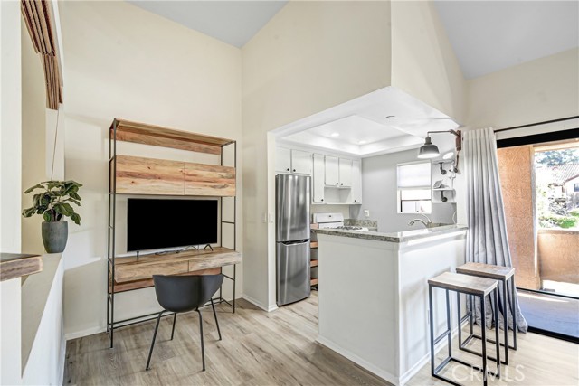 Welcome to 1062 Calle Del Cerro #1208, an opportunity to own in San Clemente at an accessible price point. This upper-level 1 bedroom, 1 bath residence features vaulted ceilings, an open living and dining area, updated flooring, and abundant natural light throughout. The kitchen offers quartz countertops, stainless steel appliances, and a breakfast bar that opens to the main living space. The spacious bedroom includes mirrored closet doors and direct access to the full bath, while in-unit stacked laundry provides everyday convenience. A private covered balcony extends the living space and overlooks the community’s landscaped grounds, pond, and pool area. Property was repiped in February of 2026. Located within the Vista Pacifica community, residents enjoy amenities including pools, spa, water features, greenbelts, detached garage parking, and RV parking upon application and availability. The property offers convenient access to downtown San Clemente, local beaches, hiking and biking trails, shopping, dining, and nearby Life Time Fitness - San Clemente. With close proximity to freeway access and coastal attractions, this home presents a practical entry into the San Clemente lifestyle.