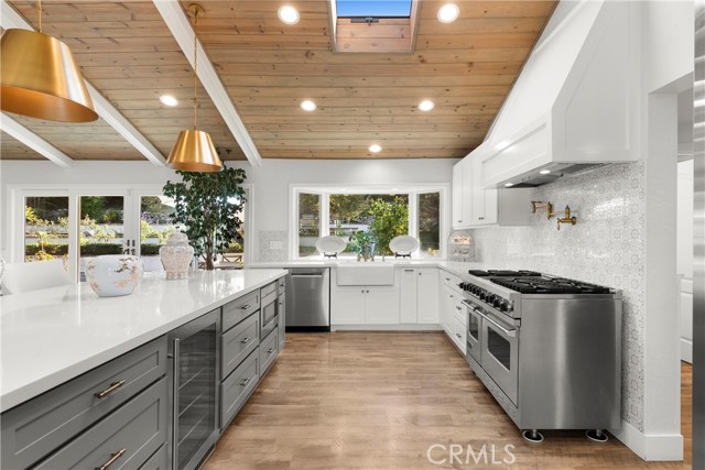 Discover a rare opportunity to own a beautifully reimagined single-level retreat where timeless design meets effortless California living. Nestled on an expansive lot in one of San Juan Capistrano’s most serene and established neighborhoods, this exceptional residence has been thoughtfully redesigned with an emphasis on comfort, balance, and refined livability. A welcoming entry opens to a light-filled interior defined by vaulted ceilings, exposed wood beams, and a seamless flow between living spaces. At the heart of the home, the stunning open-concept kitchen serves as both a functional workspace and a natural gathering place. Anchored by a dramatic waterfall island, the space features custom cabinetry, premium appliances, and oversized windows that frame picturesque backyard views. The adjoining living and dining areas offer generous proportions and cohesive design—perfectly suited for both everyday living and elegant entertaining. Outdoors, the property transforms into a private resort-inspired sanctuary. A sparkling pool and spa anchor the expansive hardscape, complemented by multiple lounge areas, shaded cabanas, and mature landscaping that creates both beauty and privacy. At the rear of the grounds, a terraced garden with winding stone pathways and a classic fountain provides a tranquil backdrop seldom found at this price point. The thoughtfully designed layout includes well-appointed bedrooms and tastefully updated bathrooms, highlighted by a spa-like primary bath featuring dual vanities and a spacious walk-in shower. Additional enhancements include owned solar, an attached garage, and extensive upgrades throughout the interior and exterior. Offering the rare combination of single-level convenience, elevated finishes, and a truly exceptional outdoor setting, 30182 Silver Spur Road stands out as one of San Juan Capistrano’s most compelling opportunities.