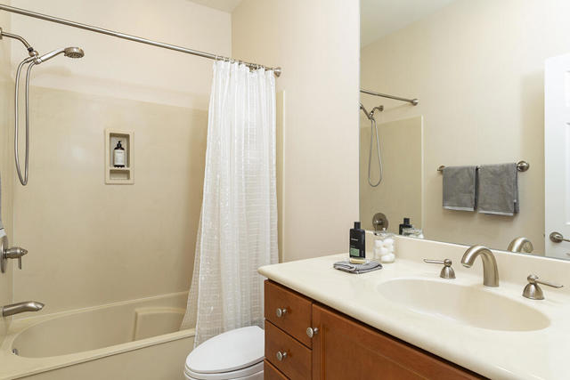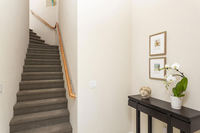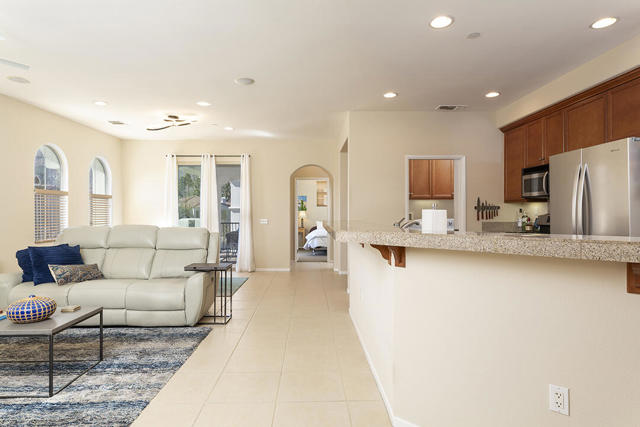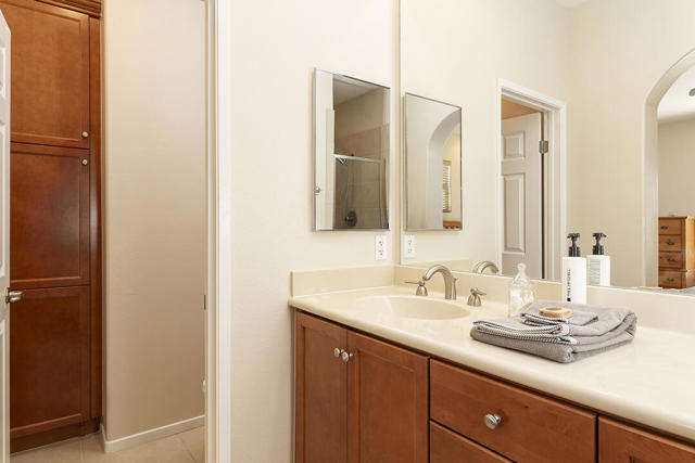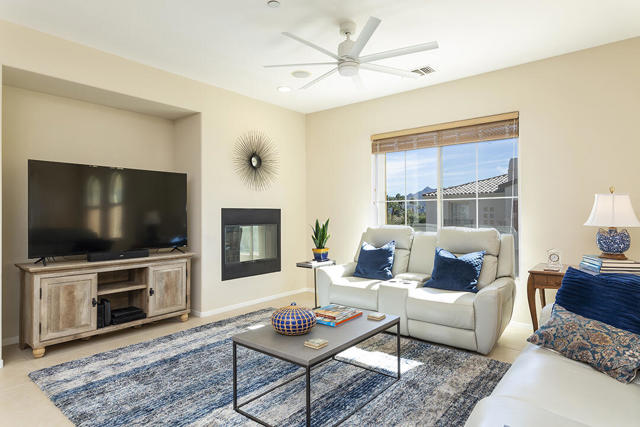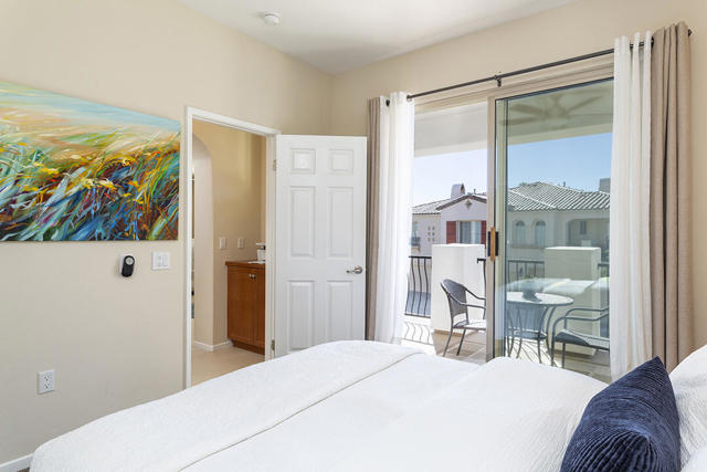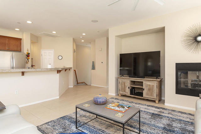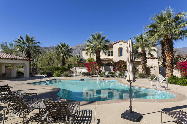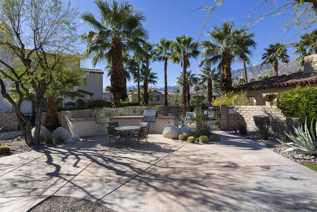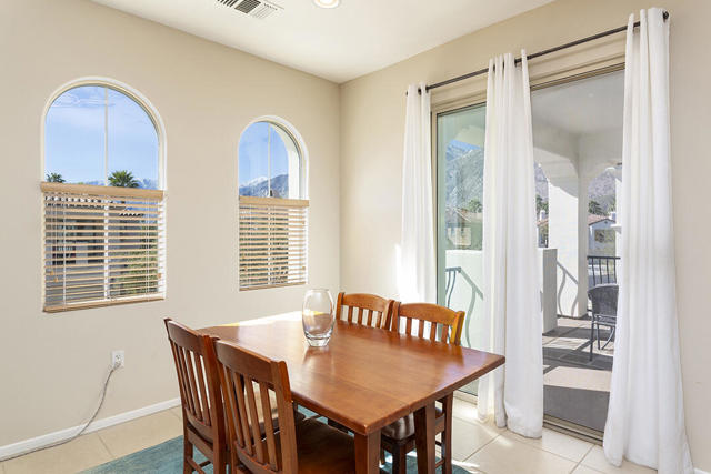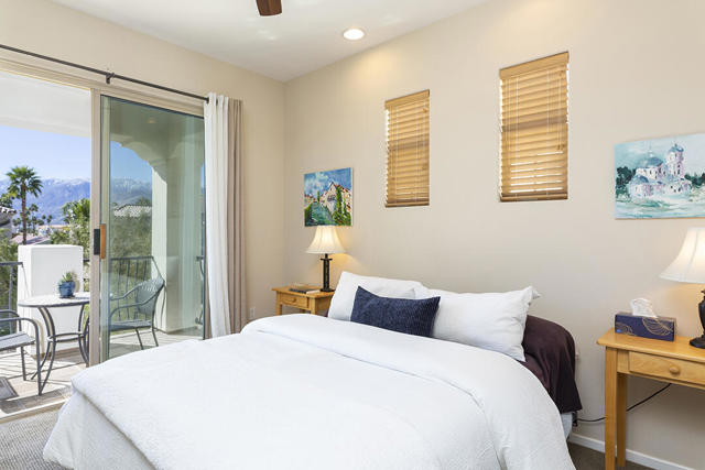 This upper-level carriage home in the centrally located Tierra Hermosa gated community offers an ideal blend of comfort, privacy, and Palm Springs convenience. With no one below you and mountain views from nearly every room, the residence features a spacious open-concept great room combining the kitchen, living, and dining areas, along with a fireplace and a flexible desk or bar nook.The two-bedroom layout positions the primary suite on one side and the guest bedroom on the other, with the second full bath adjacent to the guest bedroom for convenience. The dining area and guest bedroom both open to a private balcony with amazing mountain views. The kitchen offers an dine-in bar, walk-in pantry, recently replaced refrigerator, and a separate laundry room. With only one shared wall, the unit takes advantage of its primary southern exposure and has windows to the east and west as well, providing abundant natural light in addition to the views.The two-car garage with additional storage is located at ground level off the private entry area. The community's amenities include two pools and spas, multiple BBQ areas, and a central, park-like green area. The home's central location puts many of Palm Springs' attractions only blocks away, including the Palm Springs Convention Center, the Agua Caliente Casino, and downtown's plentiful shopping, dining, and entertainment. This home really does have it all.