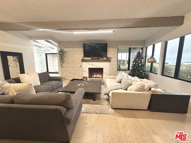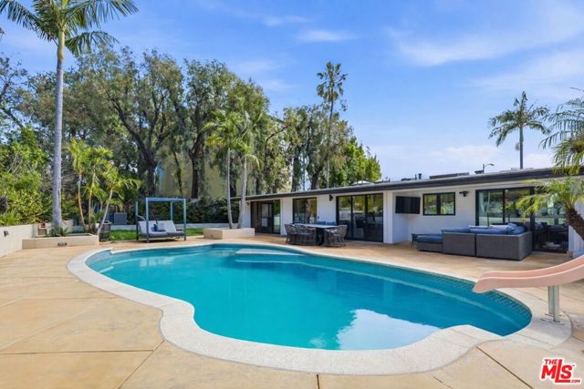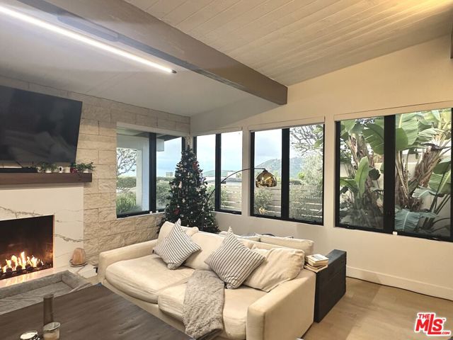 Lease to Buy Option Available. Perfect for the new homeowner or developer seeking to build upward and maximize the property's stunning panoramic vistas. Perched at the top of prestigious Marquez Knolls on a quiet cul-de-sac in a highly regarded neighborhood, this fully renovated (August, 2023) mountaintop retreat sits on a large 11,687SF lot and offers rare privacy, security, and ocean and mountain sunset views. The pool and spa have been recently upgraded with a pebble-finish replaster, refreshed tile, LED color lighting, enhanced filtration system, redesigned skimmer box, and updated drains, further elevating the home's resort-style appeal. This home, along with all other homes on the cul-de-sac, was not structurally damaged by the Jan,2025 wildfires. Elevated above the coastline, the home captures fresh ocean air, dramatic Pacific sunsets, and serene mountain surroundings. Designed for seamless indoor-outdoor California living, with high 10+ foot beamed ceilings and warm white oak wood floors that flow throughout light-filled interiors that open to expansive tropical front and rear yards. Multiple outdoor entertaining and workspace areas make it ideal for executives working remotely, families seeking space, or anyone looking to escape congestion while remaining minutes from the beach, hiking trails, and Lake Shrine. The property offers exceptional privacy and security, complete with a Ring alarm monitoring system, video doorbell, and floodlight cameras. The grounds are enhanced by updated wood-paneled fencing with iron posts and integrated LED lighting, complemented by thoughtfully redesigned landscaping featuring bamboo, fruit trees, lush greenery, and Mexican beach pebbles elegantly woven throughout. Generous driveway and street parking provide added convenience for guests. Interior features include an updated en-suite primary room complete with a spa-inspired wet room featuring dual rainfall showerheads, a soaking tub, heating fan, and TV. Additional highlights include updated dual-pane aluminum casement windows and multi-slide doors, 41SF glass-iron pivot door, an in-line Thermador built-in espresso machine with fresh-ground capability, Viking appliances, water filtration system with reverse osmosis and alkaline treatment supplying the pot filler and smart LG ThinQ refrigerator (with additional spherical craft ice maker), custom cabinetry and creative mines sanddollar exterior/interior stone features. The home also offers six LCD TVs throughout, a gas fireplace, automated shades, heated toilet seating with integrated bidet, wine rack, wine refrigerator, tankless hot water, Tesla EV charger, smart washer, dryer and dishwasher, and an additional refrigerator in the garage. Additional smart-home features include updated MyQ garage door, integrated lighting controls, Nest thermostat, Hyve irrigation system, landscape lighting, and an iAquaLink pool system. The spacious yards provide ample room for children or pets to enjoy. A dedicated private home/garage gym featuring a treadmill, TV, Olympic free weights, dumbbells, kettlebells, multi-functional adjustable weight bench with preacher curl and leg extension attachments, inversion table, and multi-functional adjustable weight bench, creates a turnkey wellness environment. Quiet. Secure. Elevated. This residence offers a rare combination of safety, luxury, and coastal mountain living. **All furniture negotiable with offer.