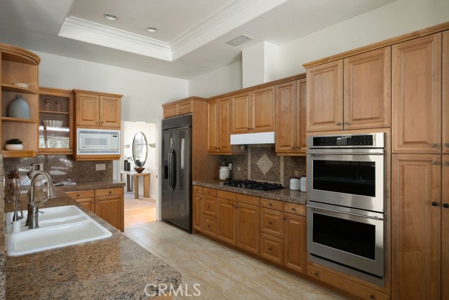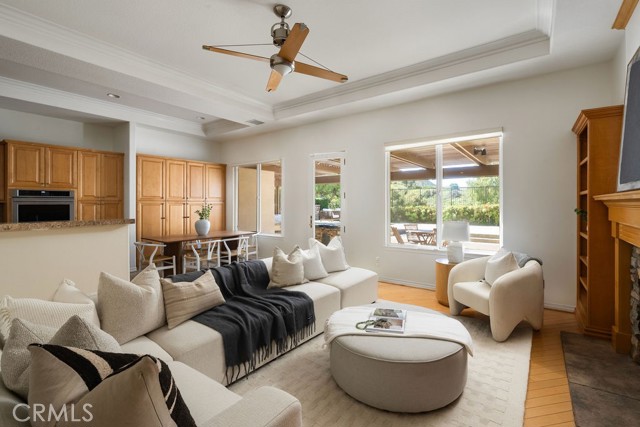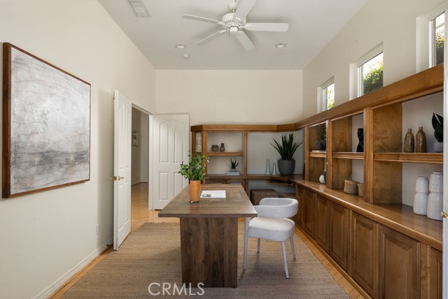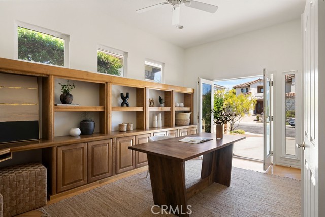 Welcome to a rare find in Hillcrest Estates. Tucked behind the gates in one of Laguna Niguel’s most established neighborhoods, this single-level home sits on a flat lot with sweeping westward hillside and canyon views. The setting feels elevated and private, yet connected to everything that defines coastal Orange County living. Inside, the layout is thoughtful and easy with high ceilings throughout creating a spacious setting. 3 bedrooms and 2.5 bathrooms are complemented by a full dedicated office with built-ins, ideal for working from home or carving out space that is entirely your own. Formal dining pairs with two comfortable seating areas, offering flexibility for both hosting and everyday living. The open kitchen with breakfast nook flows naturally to the backyard through Milgard dual-paned windows and glass door, creating an effortless indoor/outdoor rhythm. Natural light fills the main living spaces while maintaining a sense of warmth and comfort. Step outside to a covered patio complete with a built-in barbecue and bar top, designed for relaxed entertaining with accessibility features. The flat lot provides usable outdoor space, while the canyon backdrop adds depth and privacy. Fresh interior paint and new carpet in living areas give the home a fresh feel. A leased Tesla solar system supports energy efficiency, and the spacious 2-car attached garage includes built-in storage with a large accessible attic. This property has accessibility features throughout including doorways, bars, ramps and zero steps—all tastefully incorporated for the option of ease. Hillcrest Estates is known for its elevated privacy, trail access, and 24-hour guard gated security. Residents enjoy close proximity to Laguna Niguel Regional Park, the Salt Creek Trail, Whole Foods, and some of South Orange County’s most beautiful beaches just minutes away. This upscale single-level residence is best experienced in person and is a truly rare offering.