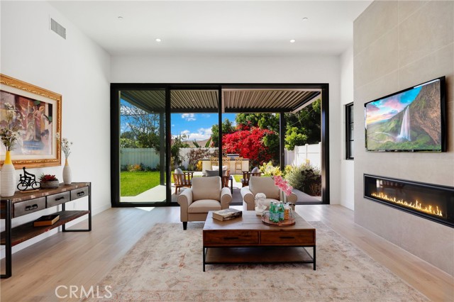 Step into the newly built single-story custom home at 20171 Bayview Ave., boasting an elegant floorplan, lofty ceilings, and sophisticated designer touches throughout. A grand 10-foot entry door ushers you into living spaces adorned with 12-foot ceilings. The kitchen features a substantial island with seating, complemented by custom Aranelli Italian cabinets and top-tier Wolf Subzero appliances including a range, refrigerator/freezer, wine cooler, and double stacked ovens (totaling four ovens) ideal for hosting large gatherings. A cozy fireplace graces the family room, while a 10-foot tall pocket door seamlessly integrates indoor and outdoor spaces, flooding the interiors with natural light. Outdoors, a concrete patio, rain sensor-equipped patio cover with remote-controlled Louvers, and a built-in barbecue island with fire pit invite entertaining. Each bedroom boasts 10-foot ceilings and custom closets. The luxurious master bathroom offers a spa-like retreat with custom tile work, dual sinks, a soaking tub, and a walk-in shower featuring Kohler plumbing fixtures. Additional features include dual-zone HVAC, designer lighting fixtures, 8-foot interior doors with designer hardware, and solar panels. Situated in an award-winning school district, moments from the Back Bay and playgrounds, and a short drive to South Coast Plaza and Fashion Island for premier dining and shopping. Easy access to the 405, 73, and 55 freeways completes this exceptional Newport Beach lifestyle offering.