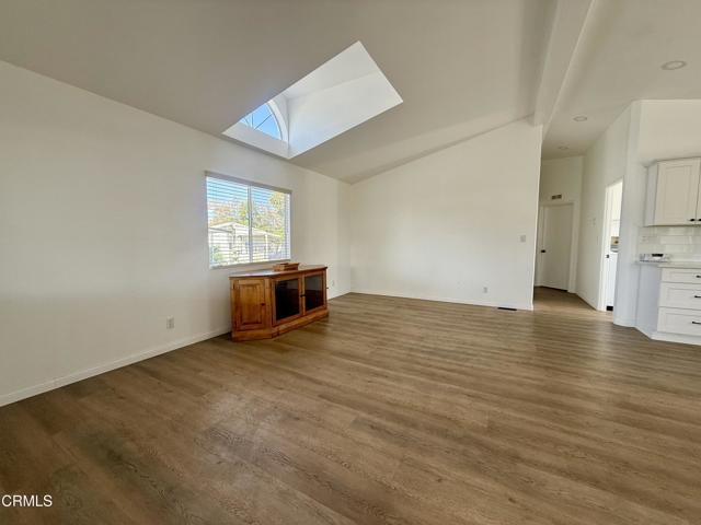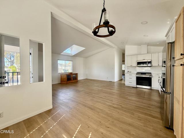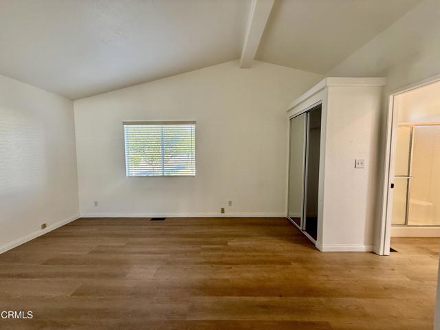 3 Bedroom + 2 Bathrooms in La Posada 55+ park .This home is beautiful with cathedral ceilings and stainless steel appliance including a washer & dryer. Wood like waterproof laminate flooring. Rare side by side carport parking. Walk to restaurants, Starbucks, grocery store and more. Its close to 101 freeway and a short drive to the beach and harbor. Small pet welcomed. Application to the park ( with park management ) to coincide with accepted offer. Pay one of the lowest space fees in Ventura! Also beautifully maintained small park. Pool and spa Visitor parking close to the home