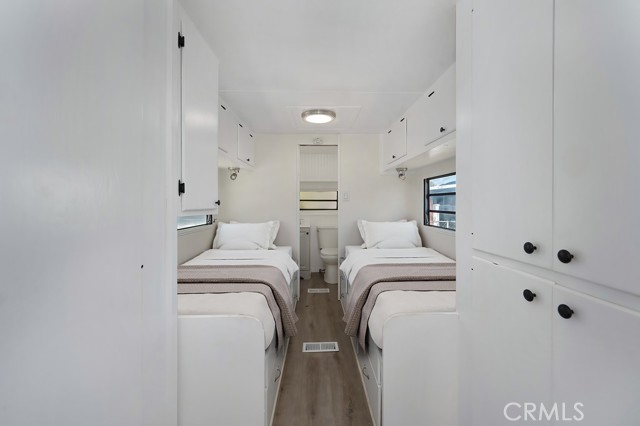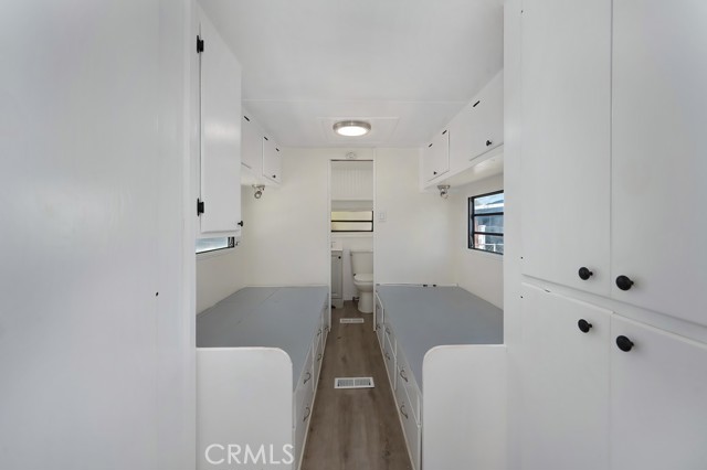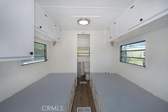 This is a Park Model Home (H&S 18009.3) Welcome to this charming 1976 park model home located in Quiet Oaks MHC, offering affordable space rent of $695. This vintage home has been beautifully remodeled inside and features updated flooring, fresh interior paint, and modern touches throughout. As you enter, you are greeted by a warm and inviting living space that flows into a galley-style kitchen with ample cabinetry for storage. The 1-bedroom features two built-in captain-style beds with drawers underneath and additional storage above, making excellent use of the space. The bathroom is located at the end of the unit for added privacy and convenience. Though cozy in size, this home offers vintage charm and thoughtful updates, making it a great opportunity for comfortable and affordable living.