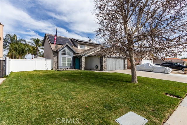 THIS COZY 3 BEDROOM/2 BATH POOL HOME WITH SOLAR HAS IT ALL! THIS 2-STORY HOME FEATURES A GREAT FLOORPLAN WITH NEUTRAL COLORS WITH A TASTEFUL MIXTURE OF TILE AND WOOD FLOORING THROUGHOUT. ENERGY EFFICIENCY IS ALSO INCREASED WITH THE ADDITION OF CEILING FANS AND A WHOLE HOUSE FAN. THERE’S A COZY FIREPLACE IN FAMILY ROOM AND THE BIG BACKYARD INCLUDES A POOL, SPA, AND A COVERED PATIO ADORNED WITH CEILING FANS AS WELL. IT’S GREAT LOCATION CLOSE TO FREEWAYS & SHOPPING, ALONG WITH IT’S LOW TAX RATE AND NO HOA MAKE THIS A MUST-SEE PROPERTY.