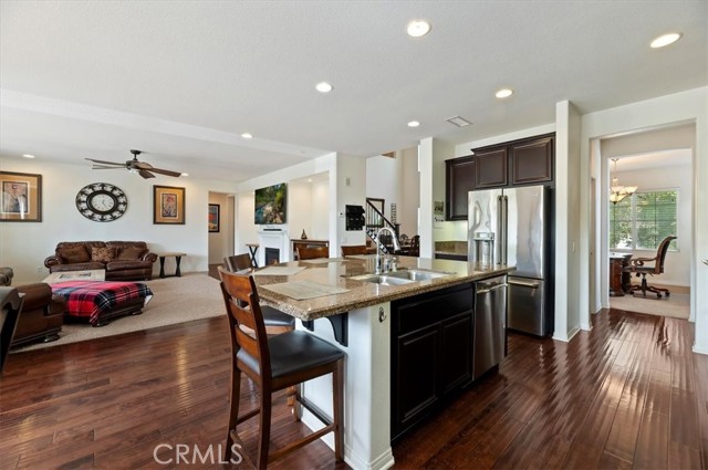 Immaculate Executive Home,in the Retreat, premium view Lot, man guarded gate community, Fantastic floor plan, 4 bedrooms ( 1 Downstairs with Full Bath), 5 baths + bonus room and office.. Built in 2012, 3583 Sq/Ft on a 10,019. island kitchen, all stainless steel G.E. Profile appliances & sink, cook top stove, dark mocha cabinetry, refrigerator, double oven, walk-in pantry, recessed lighting, opens to family room, wrought iron staircase, formal living & dining rooms, Plush carpet and wood floors, ceiling fans, upstairs bonus room, Jack N Jill bedrooms, spacious master Suite w/ retreat, fireplace, granite his & her vanities, separate tub & shower, large walk-in closet, view deck with awesomm, mountain & city light views, stucco patio , custom paver rear yard (Low Maintenance) , fire Pit, lemon tree, and 3 car tandem garage!!. Close to Dos Lagos theaters, restaurants , shopping and 5 minutes to Fastrak entrance which can get you to Newport Beach in 40 minutes!! One Beautiful Home!!