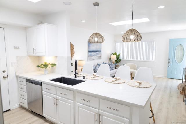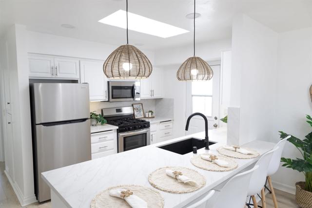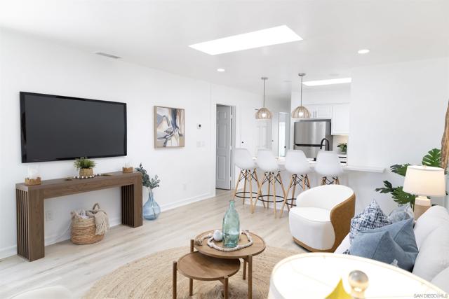 Rare opportunity to own a beautifully remodeled home in the highly desirable coastal community of Cardiff-by-the-Sea, located just one mile from world-famous Swami’s Beach and within walking distance to Cardiff’s popular shops, restaurants, parks, and everyday conveniences. This thoughtfully updated 3-bedroom, 2-bath residence blends modern finishes with relaxed coastal living. The recent renovation introduces a bright, open-concept layout centered around a redesigned kitchen featuring quartz countertops, a custom backsplash, and brand-new stainless steel appliances. Wide-plank white oak–tone flooring runs throughout, complemented by recessed lighting, skylights, and new windows and sliding doors that fill the home with natural light. Additional upgrades include modern ceiling fans in each bedroom, generous closet space, and a full-size Samsung front-load stackable washer and dryer. Exterior improvements feature fresh paint, updated retaining walls, and newly designed landscaping that create a clean and welcoming setting. Enjoy the convenience of two dedicated driveway parking spaces plus additional street parking for guests. Ideally positioned in one of North County’s most sought-after coastal neighborhoods, the property offers easy access to beaches, scenic walking paths, neighborhood parks, and Cardiff’s vibrant local dining scene—making it an exceptional opportunity to enjoy the best of coastal Southern California living.