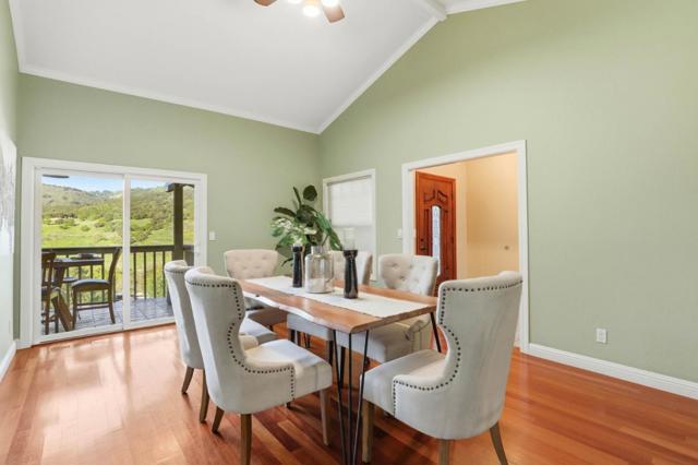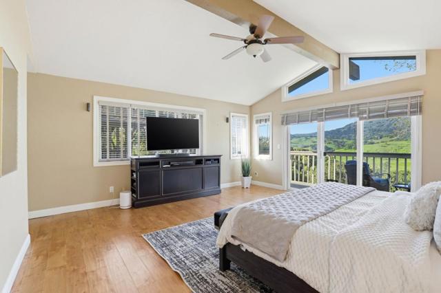 Welcome to your dream home in the highly sought after Holiday Lake Estates neighborhood! With stunning views of the hills, privacy, and a bonus living space perfect for in-laws, guests, or extended family. This expansive 5-bedroom, 3,564 sq ft residence offers a luxurious lifestyle on a large lot size of 20,000 sq ft. The exquisite kitchen is a culinary delight, featuring granite countertops, a gas cooktop, built-in oven, exhaust fan, wine refrigerator, and an island, perfect for entertaining. With office space for anyone looking to work from home. Enjoy cozy evenings by the fireplace and marvel at the diverse flooring options, including marble, tile, carpet, wood, and concrete. The home boasts an array of amenities with open beam ceilings, garden windows, high ceilings, and skylights, enhancing its elegance. The dining options are versatile, with a breakfast bar, formal dining room, and breakfast nook. The primary suite includes a retreat with a walk-in closet and a bathroom with double sinks and a tub with jets. A spacious laundry area adds convenience, and the property is located within the Morgan Hill's award winning school district. With three garage spaces, this home is a perfect blend of style and functionality.