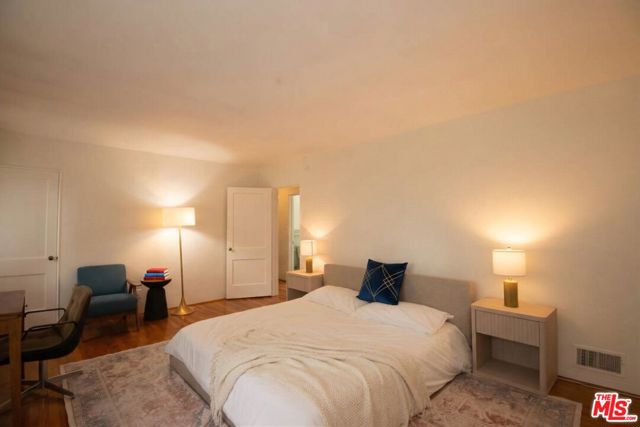 Rare Village Green townhome positioned directly on the central green with expansive treetop views and a layout that lives like a single-family home.The oversized primary bedroom looks out across the mature canopy of the main green, creating a peaceful elevated view rarely available in the community. A second bedroom is also generously sized, and the home offers exceptional storage with large closets throughout.Original vintage tile in the bathrooms remains in remarkable condition a rare preservation detail including a main-level powder room, an uncommon feature in the Village Green. The layout includes a formal dining room and a large enclosed patio framed by serpentine brick walls and thoughtfully designed hardscaping that creates multiple outdoor spaces.Parquet floors run throughout the main level with hardwood upstairs, all beautifully maintained. A brand new furnace has recently been installed.Located in the interior of the Village Green, the home offers one of the most sought-after settings in this National Historic Landmark community surrounded by mature trees, open green space, and the architectural character that defines the property.68 acres of lush, park-like grounds. National Historic Landmark designation. 24-hour security. On-site maintenance and landscape crews. Community events are held throughout the year. Walking distance to the Metro. Minutes from downtown Culver City. Centrally located to all of Los Angeles. Some of the photos are virtually enhanced.