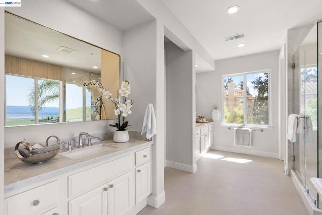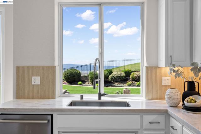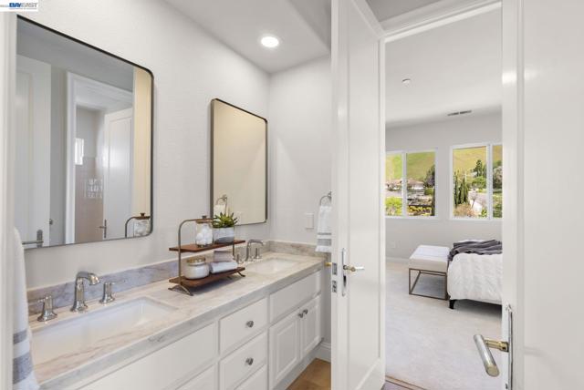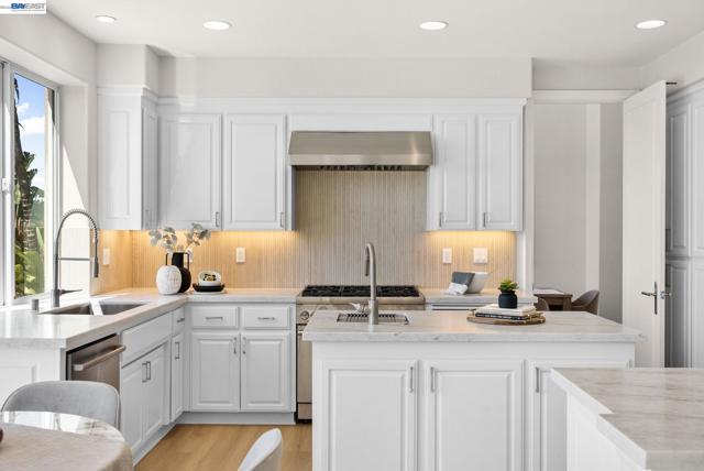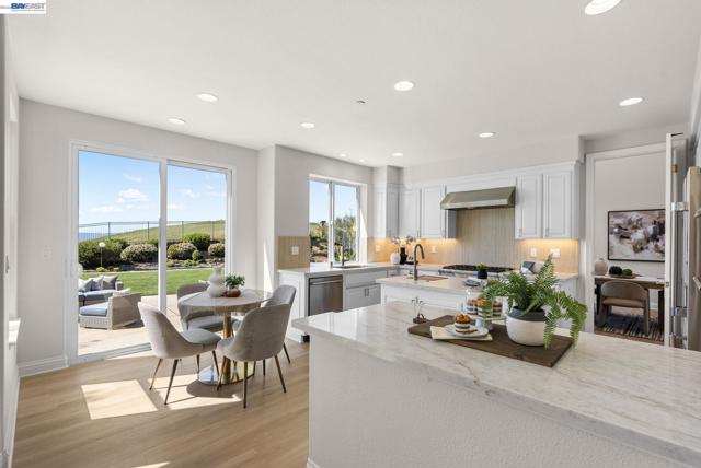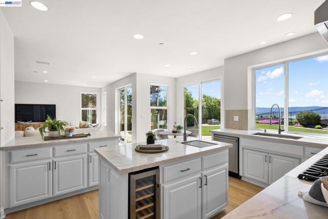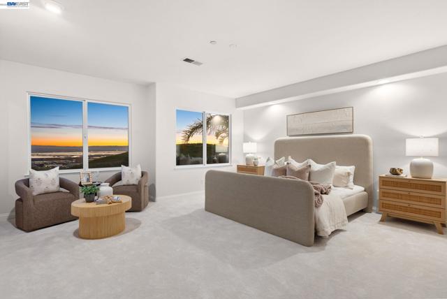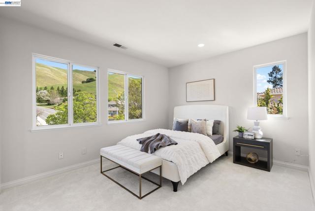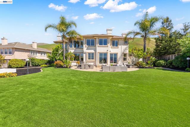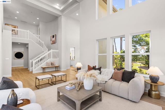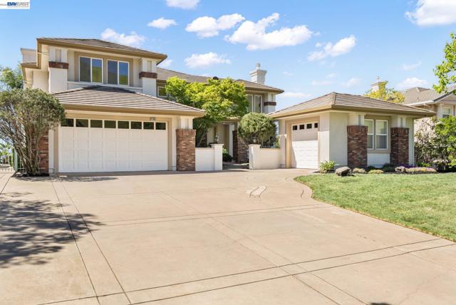 Perched behind the gates of exclusive Avalon Heights, this refined two-story home showcases sweeping Bay views with dramatic hillside and city vistas. Set on a premium 21,666 sq ft lot with no rear neighbors, the home offers approximately 3,083 sq ft of light-filled living with soaring ceilings, expansive windows, and a flowing floor plan designed for effortless entertaining and everyday comfort. A coveted main-level bedroom suite provides flexibility for guests or multigenerational living. The formal living room with fireplace sets a sophisticated tone, while the spacious family room invites relaxed luxury. Recent enhancements include luxury wide-plank flooring on the main level, recessed LED lighting, a refreshed fireplace hearth, and a third-car garage conversion ideal for a gym, studio, or office. The chef’s kitchen features quartzite countertops, a designer ceramic tile backsplash, an undermount sink, updated hardware, and Thermador appliances. Upstairs, the view-wrapped primary suite offers a remodeled spa-inspired bath with a freestanding soaking tub and porcelain-tiled shower. Outside, refreshed landscaping surrounds an expansive backyard designed for sunset dining and entertaining, just minutes from top-rated schools, major tech campuses, and easy access to 680 and 880.