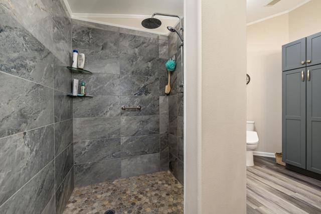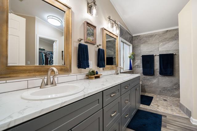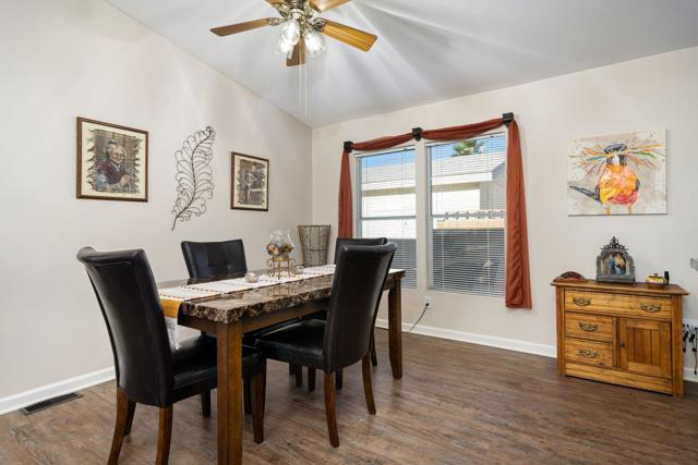 Beautiful Desert Grove--an active, 55+ community! Come see this sought-after location on a great block framing the residential definition of quaint, cozy, and charming. A recent interior renovation touches the key design features you seek; this classic 3-bedroom, 2-bathroom double-wide home offers light-and-bright interior living spaces. An open living room with high ceiling adjoins the easy-access ''Cook's Kitchen'' with stainless appliances and roomy dining area. An ideal split floorplan separates comfortable bedrooms 2 and 3 from the invitingly-large primary bedroom with Wow! ensuite bathroom and walk-in closet. Attractive, low-maintenance exterior landscape surrounds. Enjoy your own privacy-retreat covered patio and backyard area with trees and flowers abloom; a place where quietude and serenity abound. You'll find a two-car detached garage complete with work bench and cabinets. On-site RV parking available for a nominal fee. The low HOA fee includes access to two sparkling pools, spas, tennis, and pickleball courts, and common area maintenance. This desirable property--a cinch to maintain and offering a secure lock & leave lifestyle--is ideal for those seeking an enjoyable yet peaceful retirement setting located just minutes from fine restaurants, great shopping, and top medical facilities. Land is owned, not leased. Don't miss this great Desert Living opportunity!