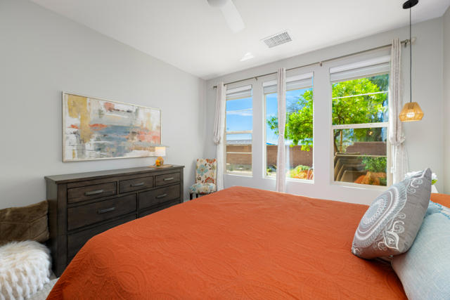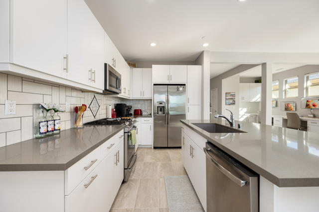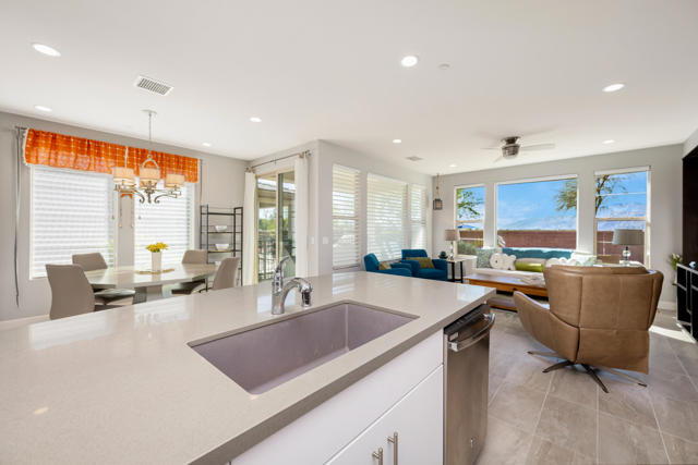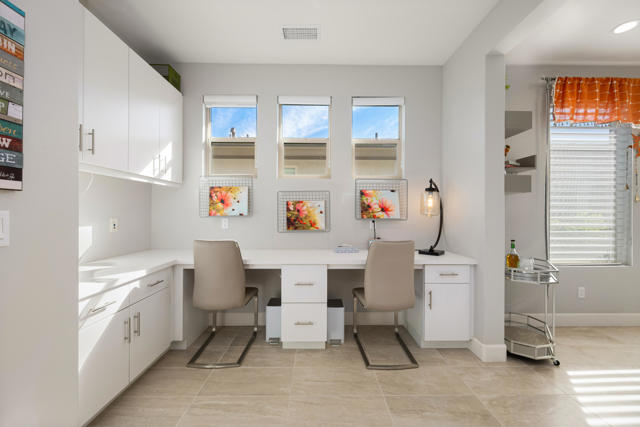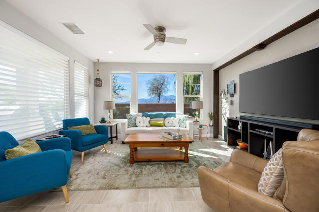 With an open-concept floorplan and thoughtful upgrades throughout, this Muros floor plan offering 2BR/2BA + office with built-ins. Offering flexible living space with a large open great room that includes an entertainment area wall and dining area, that makes a stunning use of space. At the heart of the home is a gorgeous kitchen with upgraded cabinetry and drawers, quartz countertops with glass tile backsplash, and an intimate island where your guests can sit and chat while you prep and chop. You'll fall in love with the spa-inspired primary bath with tile flooring, a gorgeous double vanity with framed mirrors, and upgraded shower. The guest sweet is private and Brite, the guest bath has a tub shower combo. Garage with epoxy flooring and 220 in the garage for your car charger. You will fall in love with the rear patio outdoor living space. Offering one of a kind outdoor living with awning. The open park-like setting is unlike most condo locations, with SOUTH unobstructed mountain views. This home is clubhouse close, Immaculate inside and out and a must. Call Michael for your showing today.