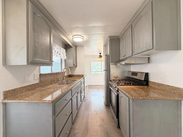 Charming and well-maintained home ideal for first-time buyers, newlyweds, or a small family. This residence offers 2 bedrooms and 2 bathrooms with a functional and comfortable layout. The living room and bedrooms feature durable laminate flooring, while the kitchen is appointed with ample cabinetry, and granite countertops. The primary bathroom has been upgraded, providing a fresh and modern feel. Central A/C was installed in 2024 for year-round comfort. Dedicated laundry area includes washer and dryer. Located directly in front of a beautiful paseo walkway, perfect for daily walks and outdoor enjoyment. Situated in a quiet and friendly mobilehome community with convenient daytime street parking available from 6:00 AM to 10:00 PM. Community amenities include a clubhouse, exercise room, swimming pool, hot tub, and billiard room. Low space rent of only $1,183 per month.