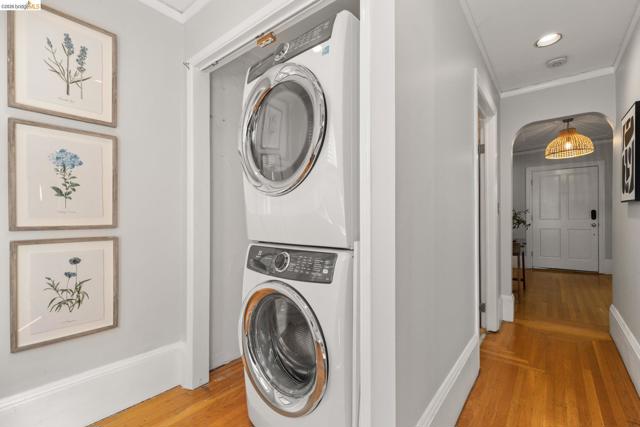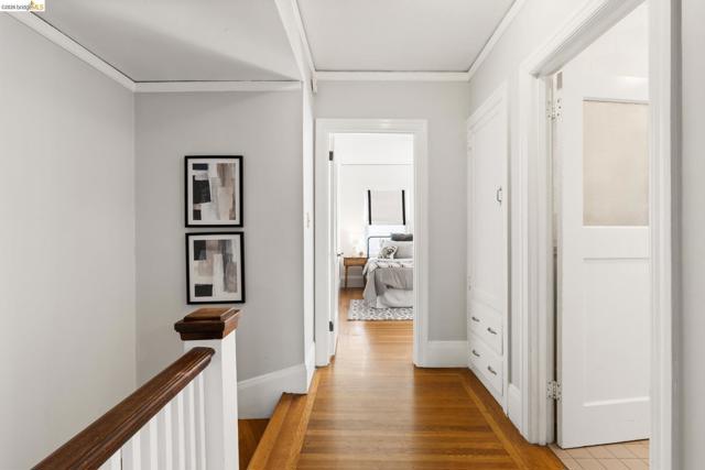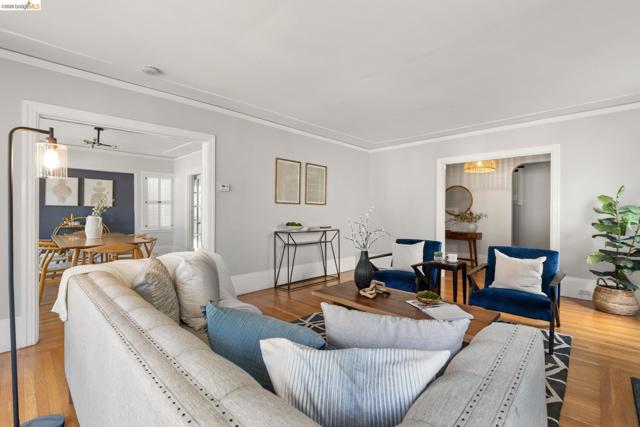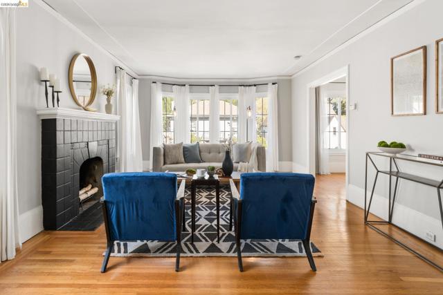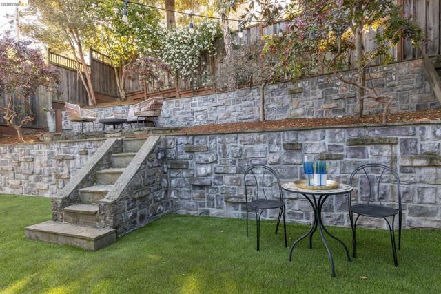 This picturesque home is set among Sycamore trees in the heart of Oakland’s close knit, ultra-desirable Trestle Glen neighborhood, with the award-winning Crocker Highlands Elementary and the best of Lakeshore Avenue’s shopping district nearby. Rich architectural details abound, from the double crown molding, oak floors and tall divided light bay windows to the wood mantel above the living room fireplace. A sun-drenched formal dining room leads to a functional kitchen with access to the backyard. The powder room and laundry area are located just at the end of the main hallway. Atop the split-level stairs sits a full bath and two spacious bedrooms – one with direct backyard access through french doors. An independent lower-level bedroom suite with full bath enjoys its own separate entrance and begs for use as a private office or au pair. The private, low-maintenance backyard includes mature landscaping, a level space of artificial grass, space for outdoor entertaining, and a flagstone patio that is perfect for lounging.