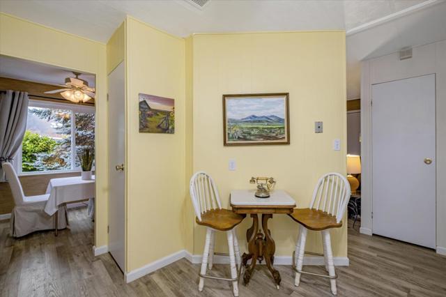 Enormous yard in sought after Rancho Corralitos! Come live the good life. Experience country living in this charming and well maintained 3-bedroom, 2-bath home in the friendly Rancho Corralitos adult park. This delightful residence offers an inviting and functional layout with pastoral views. Step out your back door and sip a morning coffee on the expansive patio. Watch deer wander through oak trees in this bucolic setting that is your backyard! The outdoor living space is perfect for hosting family and neighbors, or reading a book on a sunny afternoon. Maybe gardening or birdwatching is more your style. The options are endless. As the seasons change, cuddle up to one of the two free-standing gas fireplaces. The kitchen is well-equipped and has abundant counter and cabinet space, making it perfect for everyday cooking and entertaining. The open dining area is conveniently attached to the living room, with an additional eat-in kitchen space for informal meals. Laundry needs are easily met with the included washer and dryer. The community features walking trails, clubhouse, dog park, bocci-ball, pool and hot tub for all your recreational needs. With the oversized rear yard, this unit lives like a single family home. So hurry, don't miss the opportunity to make this gem your own.