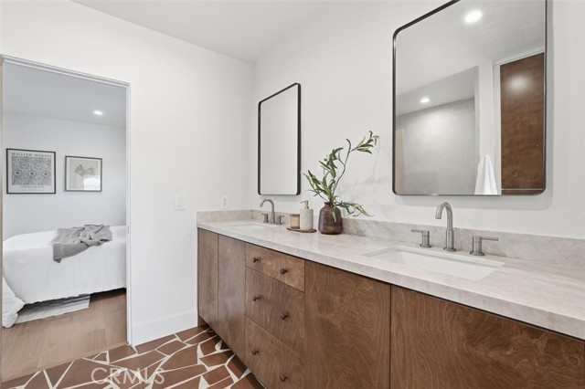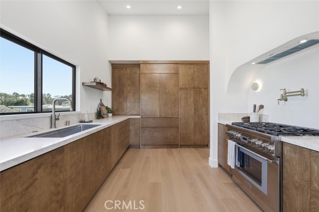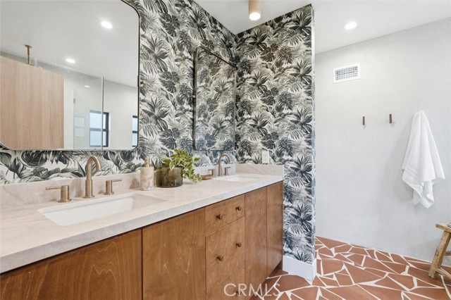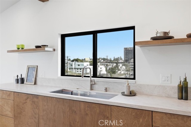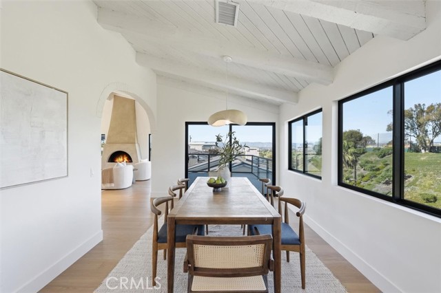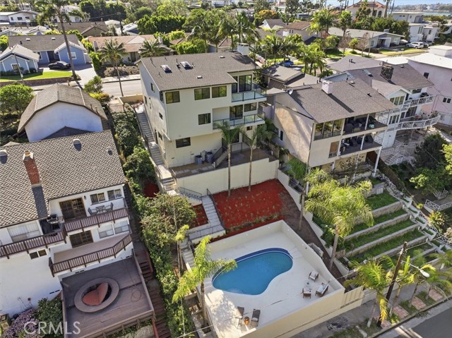 Welcome to Casa Calabar, a fully remodeled, move-in ready bluff home featuring 4 bedrooms, 3.5 bathrooms, an office, game room, and approximately 3,346 sq ft of living space. The expansive upstairs living room is bathed in natural light and offers stunning Marina and LA city light views. Vaulted ceilings, architectural arches throughout, and beautiful white oak flooring create an open, airy atmosphere perfect for relaxing or entertaining. Two fireplaces, a west-facing balcony, and multiple view decks showcase the very best of Westside living. The formal dining area flows seamlessly into the custom kitchen, complete with taj mahal quartz countertops, custom maple cabinetry, and state-of-the-art Thermador appliances. The upstairs office features custom built-ins and completes the main living level. The primary suite offers a walk-in closet and spa-like bath with dual vanities, soaking tub, glass-enclosed waterfall shower. Additional bedrooms offer flexibility for guests or growing households. The backyard includes a heated pool, modern landscaping, and multiple outdoor entertaining spaces captures the quintessential coastal lifestyle.