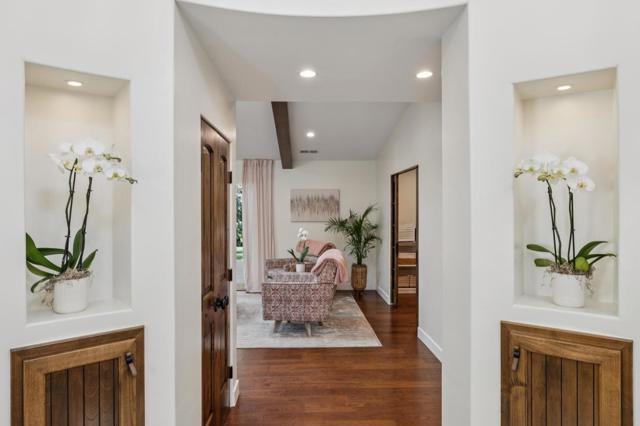 Prepare to be captivated by this beautifully remodeled single-story home in the coveted Sharon Heights neighborhood of Menlo Park. Reimagined in 2021, this 3,083 sq. ft. residence on a 12,933 sq. ft. lot blends timeless elegance with modern comfort. A formal sunlit rotunda entry welcomes you to the heart of the home - a light-filled, open-concept living and dining space with a dramatic open-beam ceiling and a chefs kitchen featuring an oversized Carrara marble island with seating, stainless steel appliances, and custom cabinetry. Skylights and expansive windows bathe the home in natural light, while a stunning wall of folding glass doors connects the indoors to a 364 sq. ft. covered patio equipped with a built-in gas BBQ, burner, sink, refrigerator, ceiling fans, and heater - perfect for year-round entertaining. Boasting 4 en-suite spacious bedrooms, a dedicated office with pocket doors for added privacy, a separate family room with fireplace, and a bonus room with a private entrance (ideal as a second office or gym),this oasis offers unparalleled comfort and privacy for both family and guests. Located minutes from shopping, parks, Stanford, Sand Hill Road, and top-rated Las Lomitas schools, this turnkey residence is a sanctuary for living, entertaining, and making memories.