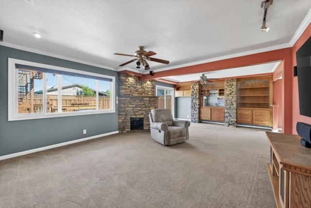 A beautiful and inviting one story residence in the sought-after San Jose neighborhood of Cambrian! Enter through the lovely front yard with pretty landscaping and partial front yard fencing which creates privacy and an attractive outdoor space to enjoy. The back yard features decking, a pergola covered spa, outdoor lighting, and artificial grass surrounded by planting areas. The home has been renovated with care over the years: Custom built-ins, an open layout, and natural stone accents create a warm and welcoming interior. The kitchen features ample cabinetry, granite counters, stainless steel appliances (including a new refrigerator) and a gas range. Exceptional tile work, tray ceilings, crown molding, and recessed lighting enhance the rooms. Most rooms feature ceiling fans for energy efficiency. The bathrooms are both well appointed, matching the earthy style of the home - granite, rich toned wood, and neutral tile choices. In the fully finished garage you'll appreciate the custom cabinetry, attic storage with a retractable ladder, epoxy coated floor, excellent lighting, a flat screen TV and stereo with speakers, and a washer and dryer. Lots of great upgrades: New roof in 2021, new HVAC in 2023, updated plumbing, fixtures, and dishwasher, and more!