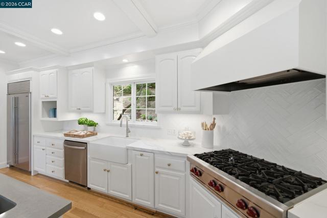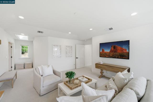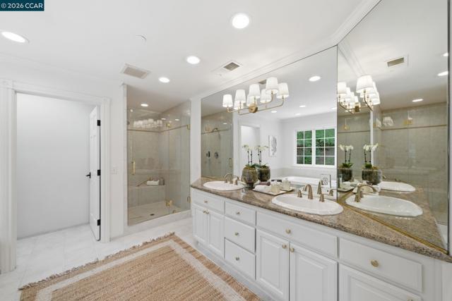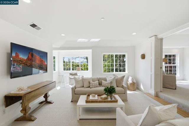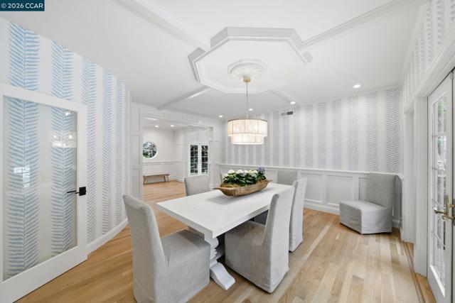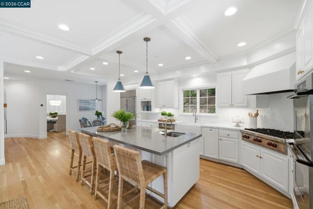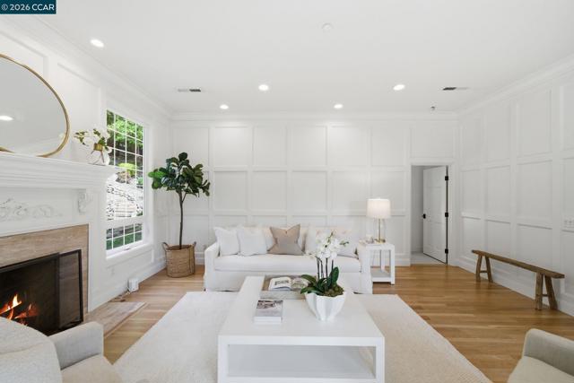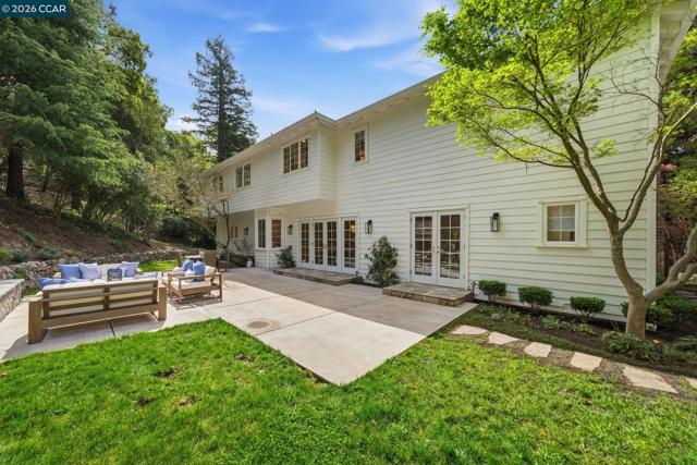 Timeless East Coast–inspired architecture meets California living at 3 Honey Hill Court. This home spans approx. 4,354 sq.ft. with 6 bedrooms and 4.5 baths. Five bedrooms are located upstairs, including a spacious primary suite with sitting room and walk-in closet, plus four additional bedrooms. An en-suite office or guest room on the main level offers ideal flexibility for working from home, hosting guests, or extended family. Formal living and dining rooms offer elevated entertaining spaces, while the updated kitchen that opens to the family room is a perfect setting for everyday living. Throughout the home custom millwork, wainscoting, coffered ceilings and designer-inspired finishes add warmth, character and timeless style. French doors open to both front and back yards, creating seamless indoor-outdoor flow for entertaining, outdoor play, and enjoying views of the Orinda hills. The backyard is anchored by a gorgeous stone wood-burning fireplace, perfect for cozy evenings and gatherings. A sport court next to the garage provides a play space for all ages. Ideally located minutes to Highway 24, BART, Orinda Country Club, and Sleepy Hollow School, this special property offers a rare blend of timeless architecture, thoughtful updates and an exceptional Orinda location.