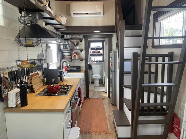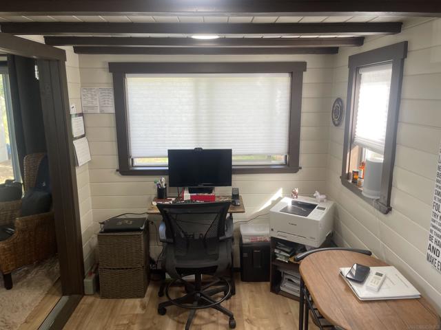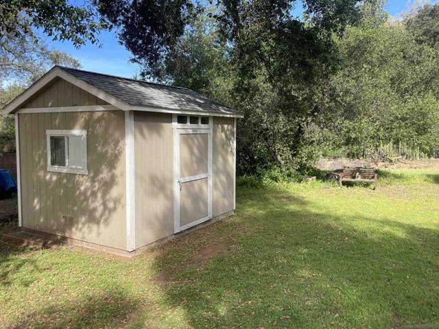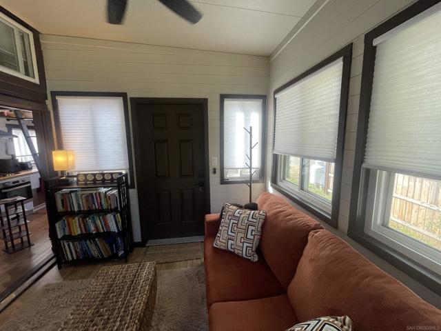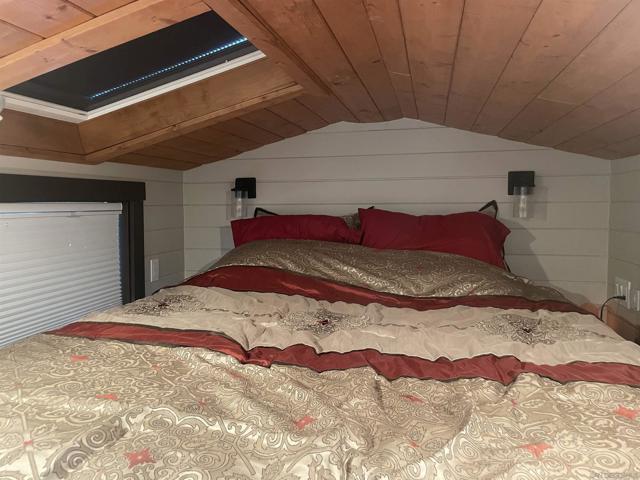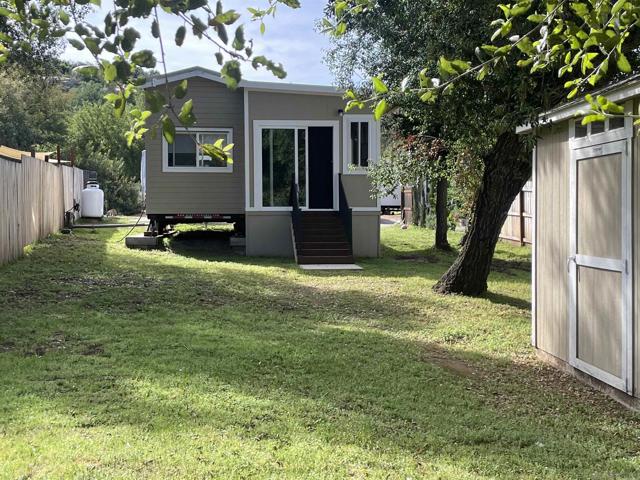 Built in 2020, this thoughtfully designed Mint Tiny Home offers an efficient layout with all the essentials for comfortable everyday living. The interior features an open-concept main space filled with natural light, a full kitchen with modern finishes, and a complete bathroom with tub, in-unit laundry, and functional storage throughout. Additional loft areas provide flexible options for sleeping or storage, while the enclosed sunroom expands the usable footprint, ideal for an office, or additional living space. Outside, enjoy a front deck for relaxing and a detached 10x12 shed with shelving and built-in workbench, set up for storage, hobbies, or workspace. Situated on an approximately 0.25-acre lot with a peaceful, natural backdrop, the property offers a sense of privacy within the Mussey Grade Village community, including access to a pool and recreation room. Conveniently located near popular hiking trails including Potato Chip Rock and Iron Mountain, as well as Mt. Woodson Golf Club and the Highland Valley wine trail, this home provides easy access to some of the area's best outdoor recreation and local attractions. Equipped with heating, air conditioning, tankless water heater, and high-speed internet availability. Seller may consider selling the home furnished, offering a turnkey opportunity for immediate use or enjoyment.