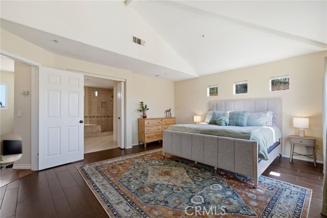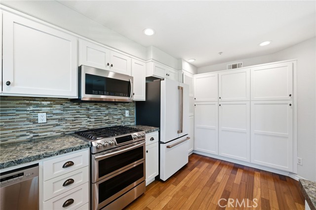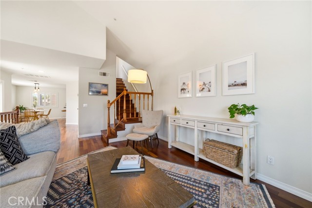 Beautifully upgraded end-unit townhome in the gated Seacliff Palms community, ready for you to move right in. Ideally located just minutes from 5 Points, Trader Joe’s, and only 2.5 miles from the beach. Enjoy abundant natural light throughout, a remodeled kitchen with granite countertops and stainless steel appliances, and a spacious living room with vaulted ceilings and hardwood floors. The oversized upstairs primary suite features an ensuite bath with a separate tub and shower. A downstairs bedroom offers its own private entrance, backyard access, and a ¾ ensuite bath—perfect for guests or flexible living. Additional highlights include a 2-car attached garage with upgraded epoxy flooring and newer cabinetry.