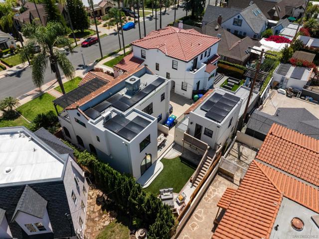 Modern Conveniences with Historical Charm. A rare offering on the coveted Adams Avenue loop in Kensington, this extensively reimagined 1920s Spanish Revival blends timeless architecture with the comfort and functionality of modern construction. Completely renovated inside and out, the home lives like new while preserving its original character and charm. The thoughtfully designed floor plan features a full ensuite bedroom on the main level, a formal living room with original fireplace and arched picture windows, and a dedicated dining space. The chef’s kitchen has been built from the ground up with high-end appliances, custom cabinetry, and French doors that open to a private backyard retreat, ideal for indoor-outdoor living. Upstairs, a newly constructed primary suite offers a peaceful escape with a spa-inspired bath, heated floors, walk-in shower, and private deck. Two additional bedrooms and a beautifully finished secondary bath complete the upper level. A fully finished detached garage with La Cantina doors and A/C provides flexible space for a gym, studio, or office. Above, a separate 1BD/1BA guest suite offers exceptional versatility for guests, extended living, or potential rental income. Upgrades include paid solar, EV charging, new ABS plumbing, and updated electrical and HVAC systems. A truly turnkey property in one of San Diego’s most sought-after neighborhoods. Modern living meets historic charm in the heart of Kensington. Ideally positioned on the beloved Adams Avenue loop, just moments from the village yet quietly removed from through-traffic, 4374 Adams Avenue is a fully reimagined Spanish Revival that has been extensively renovated to function like a new home while honoring its 1920s roots. Originally built with classic architectural detail, the home has undergone a comprehensive transformation, with nearly every system, finish, and layout element thoughtfully upgraded. The result is a seamless blend of old-world character and modern livability. The main level is designed for both everyday comfort and entertaining, featuring a formal living room with original fireplace, expansive arched windows, and custom wood detailing. A full ensuite bedroom provides flexibility for guests or multi-generational living. The chef’s kitchen serves as the centerpiece of the home, showcasing a timeless white palette, premium appliances, custom cabinetry, and French doors that open to a private outdoor setting complete with an adobe-style fireplace. Upstairs, the newly constructed primary suite offers a true retreat with a spa-like bathroom, heated floors, designer tile work, and a private deck with treetop and neighborhood views. Two additional bedrooms include individual climate control, and the secondary bathroom features elevated finishes and radiant heat. The detached garage has been fully built out with La Cantina doors and air conditioning, creating an ideal flex space for a gym, studio, or office. Above, a separate one-bedroom, one-bath suite adds significant value and versatility, perfect for guests, a home office, or potential ADU use. Additional improvements include paid solar, EV charging, new ABS plumbing, upgraded electrical, HVAC, and thoughtfully designed landscaping with drought-tolerant elements. Kensington is one of San Diego’s most cherished historic neighborhoods, known for its tree-lined streets, architectural integrity, and strong sense of community. Residents enjoy easy access to local cafes, restaurants, boutiques, and neighborhood events, all while maintaining a peaceful, residential feel just minutes from central San Diego.