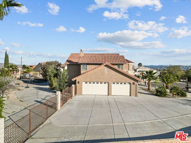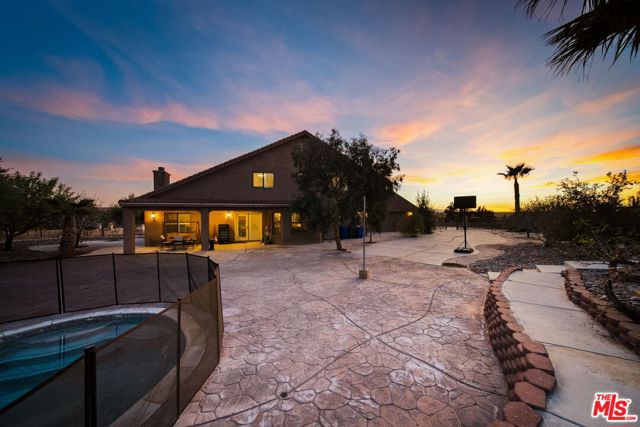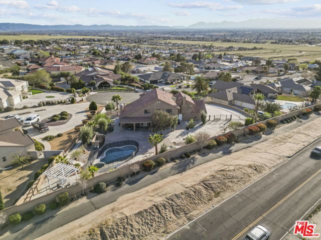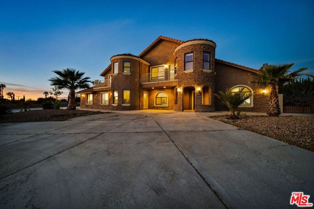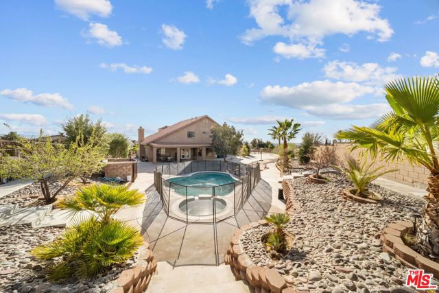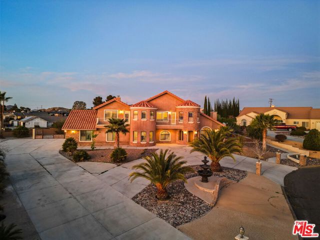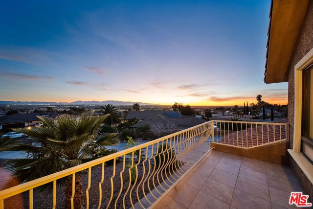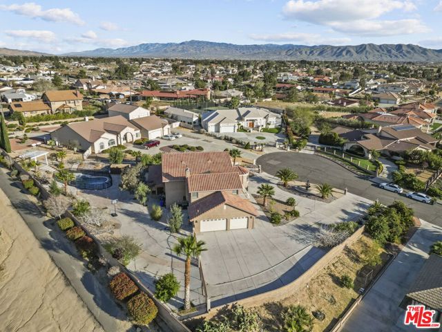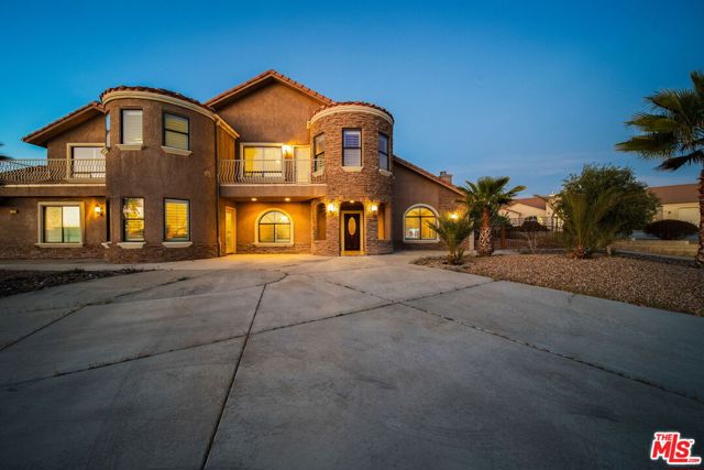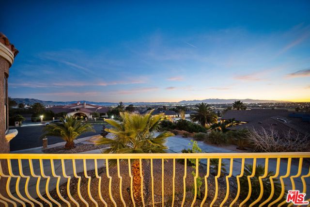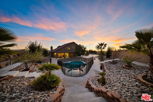 Perched at the end of a cul-de-sac in the prestigious Skyline Ranch area. This executive estate is more than just a home, it's a private retreat designed to capture the breathtaking spirit of Apple Valley. From the moment you pull up the expansive driveway the professional landscaping and commanding architecture hint at the luxury within. Stepping through the grand double-door entry you are immediately greeted by soaring ceilings and elegant Travertine flooring that guide you into a floor plan built for both grand entertaining and intimate daily life. The heart of the home centers around a chef's kitchen that would inspire any culinary enthusiast featuring dark-stained cabinetry with rich granite countertops and a massive center island with its own prep sink. Whether you are hosting a formal dinner in the dedicated dining room or enjoying a quiet morning in the sun-drenched breakfast nook every window offers a glimpse of the serene desert landscape. In the evenings the living room becomes the ultimate sanctuary anchored by a floor-to-ceiling stone fireplace that adds a touch of rustic warmth to the sophisticated interior. The experience continues upstairs where the primary suite serves as a true penthouse-style escape. Imagine waking up to 360-degree panoramic views of the mountains and city lights then stepping out onto your private balcony to breathe in the crisp desert air. The ensuite bathroom offers a spa-like atmosphere with a deep jetted tub and dual vanities providing a perfect end to a long day. With a versatile loft and a dedicated office space that can easily serve as a possible fifth room the layout adapts effortlessly to your lifestyle needs. Stepping into the backyard feels like entering a private resort. Set on over half approximately a half an acre the grounds feature a sparkling in-ground pool and spa that act as the centerpiece for summer gatherings. You can lounge under the gazebo or pick fresh fruit from your private trees or simply sit back and watch the sunset paint the sky from one of the multiple viewing decks. Beyond the gates of this hilltop haven the location offers the rare luxury of feeling secluded while remaining perfectly connected. You are just minutes away from the vibrant shopping and dining at Apple Valley Commons and the historical charm of the Village. The property's central location ensures that Town Hall and essential community services are always within easy reach. The home is served by the esteemed Apple Valley Unified School District including the award-winning Sitting Bull Academy and the highly regarded Apple Valley High School making it an ideal environment for growth and excellence. Complete with an extra-deep three-car garage and ample room for RV parking, this property isn't just a place to live it's a vantage point for the very best of Southern California high-desert living.