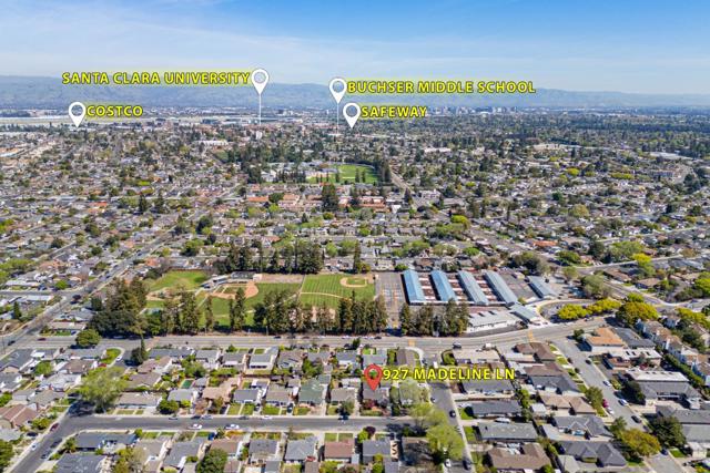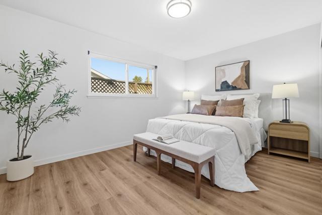 Welcome to this beautiful single-family home in a convenient Santa Clara location, featuring an appealing garden in the front yard. The home welcomes you with an inviting living room with a large bay window and a cozy fireplace, with the dining area connected. In the back is a kitchen and family room combo. The gourmet kitchen features beautiful quartz countertops, tile backsplash, stainless steel appliances, ample white cabinetry, and a breakfast bar. The family room is bright and spacious with large windows and a door opening to the backyard, creating great indoor-outdoor living. The primary suite offers a spacious bedroom and an en-suite bathroom with floating fixture and stylish stall shower. The hallway connects two spacious bedrooms and a large office with built-in cabinetry that can easily be purposed as the 4th bedroom. The hallway bathroom features a lighting mirror and stall shower. The home also includes in-unit laundry with washer and dryer and a half bath for added convenience. Enjoy the convenient location near Central Park, 8 minutes to Westfield Valley Fair, and 6 minutes to Nvidia, with easy access to San Tomas Expy and El Camino Real, and a short commute to major tech companies. Do not miss this great opportunity!