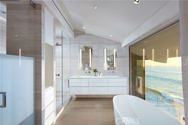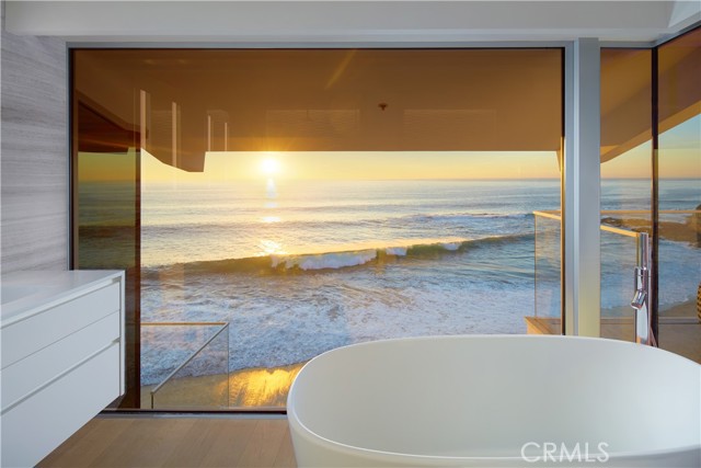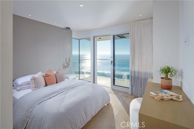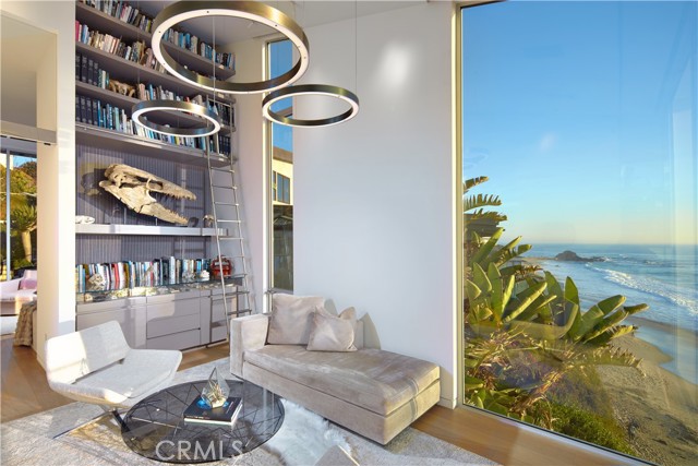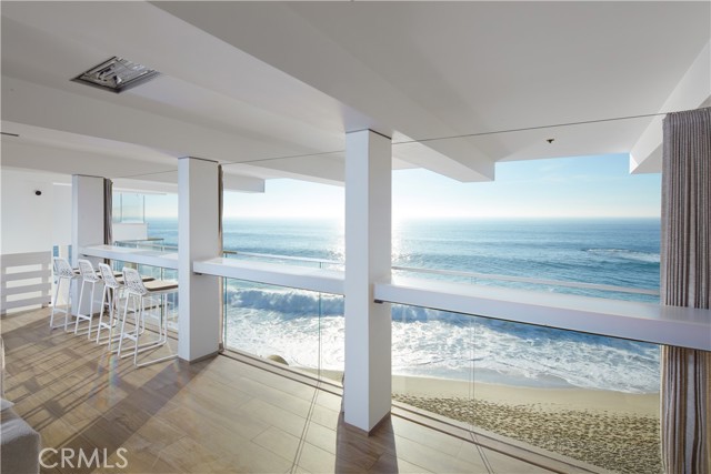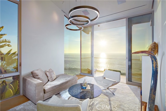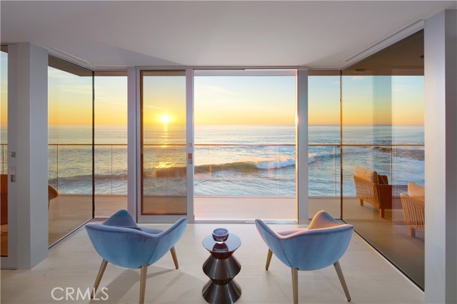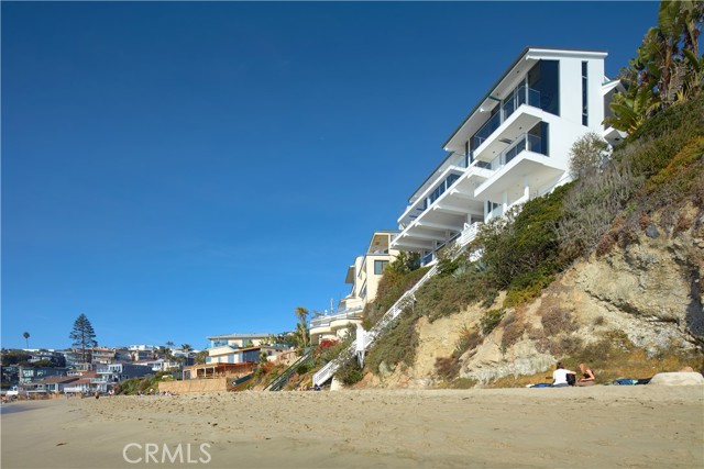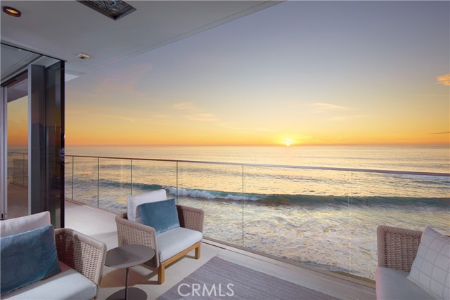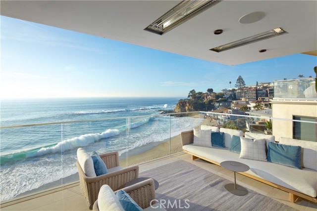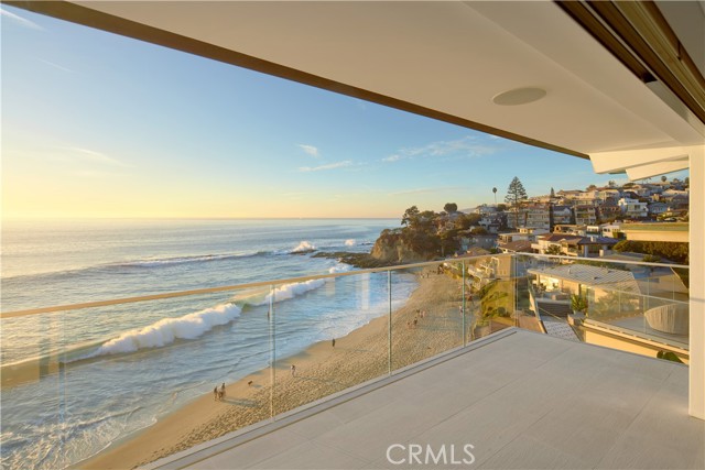 Perched above the sand on Laguna Beach’s most sought-after shoreline, this architectural masterpiece offers 79' of beach frontage with breathtaking panoramic ocean and coastline views. Painstakingly rebuilt by renowned interior design firm Aria Design and architect Anders Lasater, the beachfront residence boasts an unparalleled array of luxurious amenities including private steps descending to Laguna's highly coveted Victoria Beach. Spanning approximately 3,541 square feet across a split-level layout, the residence encompasses three bedrooms (including a tranquil meditation room), two offices, and three-and-one-half baths. At its heart lies a SieMatic kitchen—a chef’s dream outfitted with quartz countertops, and two sets of Gaggenau ovens, Sub-Zero refrigerators, and Miele dishwashers. A custom bar area with Sub-Zero fridge/freezer drawers enhances entertaining, while floor-to-ceiling glass Fleetwood doors showcase mesmerizing ocean views and bathe the home in natural light. Exceptional details include a glass-enclosed refrigerated wine display with storage for 216 bottles and Isokern fireplaces in the living room and primary suite. Approximately 1,200 square feet of outdoor decks and terraces include features such as Infratech ceiling heaters, an outdoor lounge with bar, a water element, living wall, and firepits, creating numerous peaceful verandas. The primary suite is a private haven complete with heated towel racks and exquisite finishes. Exterior highlights include limestone and porcelain details, a copper roof, and EnduroShield-treated glass railings. Expansive decks and terraces extend the living space outdoors, providing an idyllic setting for alfresco dining or moments of tranquility with the sound of the waves. Situated within the exclusive gated community of Lagunita, the home blends privacy with proximity to the renowned Montage Resort. Additional highlights include an elevator, Savant home automation, seller-owned solar, a two-car garage with vaulted ceilings, dual washer/dryer laundry setups, air and water purification systems, and advanced security. With direct private access to the sand, 14 Lagunita Drive is a true representation of elevated coastal living, offering a daily retreat from the ordinary.