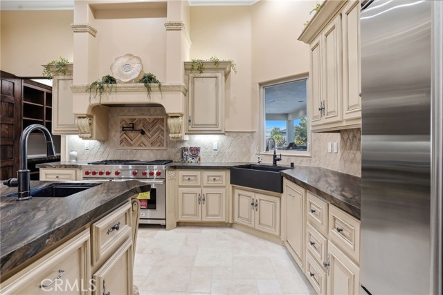 One of Bakersfield's most prestigious estates, offering 6,600+ sq. ft. of luxury living with 8 bedrooms, 6 baths, and a private guest home. This exceptional property features a sparkling pool, paid solar, and over $500,000 in recent upgrades. Enter through dramatic double doors into soaring tray ceilings, custom chandeliers, new flooring and paint, and elegant tumbled travertine. The chef's kitchen includes a Wolf cooktop, expansive walk-in pantry with wine fridge, SubZero built in fridge, and standalone freezer. Wi-Fi extenders provide seamless connectivity throughout. The primary suite is a true retreat with a two-way fireplace, copper freestanding soaking tub, and multi-jet spa shower. Outdoors, enjoy a built-in BBQ and resort-style setting. With 10 garage spaces including an RV garage, new garage doors, large RV parking, privacy gate, and 8-foot solid core doors throughout, this is a rare Bakersfield masterpiece.