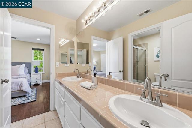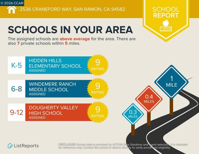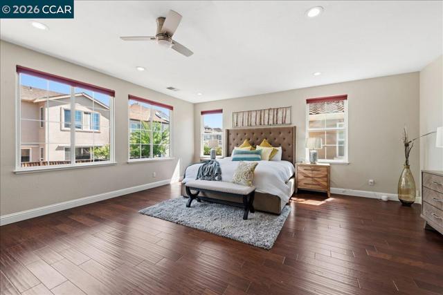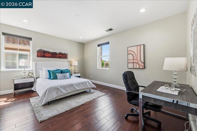 Welcome to your Windemere sanctuary just a step away from Bellingham Square Park—where luxury & modern efficiency meet in one of San Ramon’s most coveted neighborhoods. From the moment you step inside, 10 feet ceilings & designer touches create an atmosphere of sophisticated yet effortless living.Updated Hardwood floors, recessed lights & a stunning custom tile surround that anchors the media area in the family room. At the heart of the residence, the reimagined chef’s kitchen w/ sleek new countertops, a New Gas cooktop, New Sink & Hood, flowing naturally into the living spaces so you never miss a moment while entertaining. A full bedroom w/ Murphy bed, Desk & bathroom on the main level provide a retreat for guests or multi-generational living. Escape upstairs to a Master suite designed for relaxation. Enjoy Versatile large loft as vibrant media or retreat, a dedicated built-in tech center w/balcony for a home office, & Space for Library.Most Bedroom closets w/built-ins. Embracing the future of comfort, this home comes equipped w/ solar panels. A low-maintenance yard & a 3-car tandem garage w/ Custom cabinets offer extra space. Best of all, you’re just a short stroll away from the Award-Winning Hidden Hills, Daugherty Valley High, Windemere Middle, Shopping & Parks. A Must See!