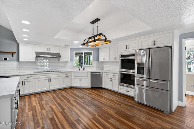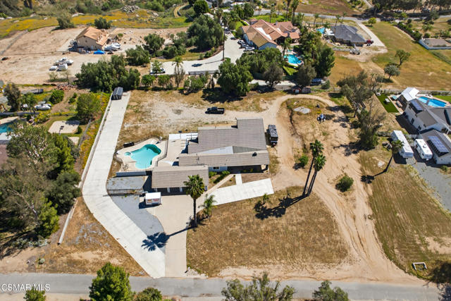 Welcome Home to this 5 bed 3 bath Single Story Ranch Home located in the desirable Woodcrest Area! Spacious and updated Kitchen with Quartz countertops, hot water heater under sink, wine fridge, Viking six burner gourmet stove top, and KitchenAid Stainless Steel Kitchen appliances including a double oven and dishwasher. Large farm style kitchen sink and plenty of cabinet storage space. Coffee Bar area and Eat In Kitchen Bar! Ensuite Primary bedroom with soaking tub and walk in shower! One Bedroom is located downstairs. Enjoy splashing in the pool and spa or relaxing on the large covered patio! Plenty of room for your RV, toy haulers or Horses! Four Car garage with custom doors and epoxy floor! All new pool equipment in 2025, New concrete out front and new driveway to back, sidewalk and pad, Year old whole house water filtration system, Two Electric water heaters 2025, New Septic put in 2025. RV Dump Station for your convenience.