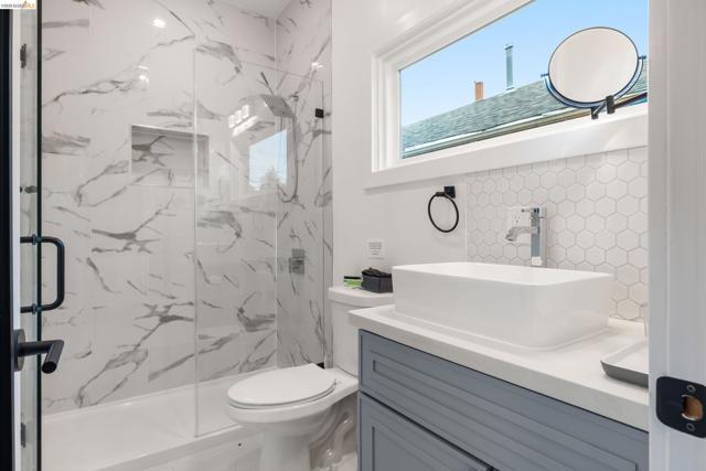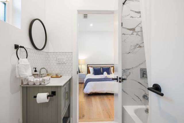 This beautifully updated home blends modern comfort with smart design—less than a block from the shops, cafes and restaurants of vibrant Piedmont Avenue. With a WalkScore of 97, this is urban living at its best. Enter through the shared front entry into a clean, welcoming foyer that leads to two distinct living spaces—each with its own private interior entrance. With 3 beds and 2.5 baths including a luxe primary suite, the main residence is a captivating blend of light and thoughtful design. The open kitchen has been remodeled with sleek finishes, island cooktop, and counter seating. It opens to the large great room, creating a comfortable hub for everyday living. At the back, a flexible bonus room opens out to a generous deck overlooking the level backyard—ideal for indoor/outdoor entertaining. Located just across the shared entry hall, the stylish ADU studio offers flexibility and privacy—perfect as a guest suite, rental or home office.. It features its own updated kitchenette and modern bath, with efficient use of space and contemporary finishes. In addition to the turnkey convenience, an extra 1525+/- extra SqFt below offers plenty of opportunity for the creative buyer. A rare opportunity to own two beautifully finished spaces—all in one of Oakland’s most hip neighborhoods.
