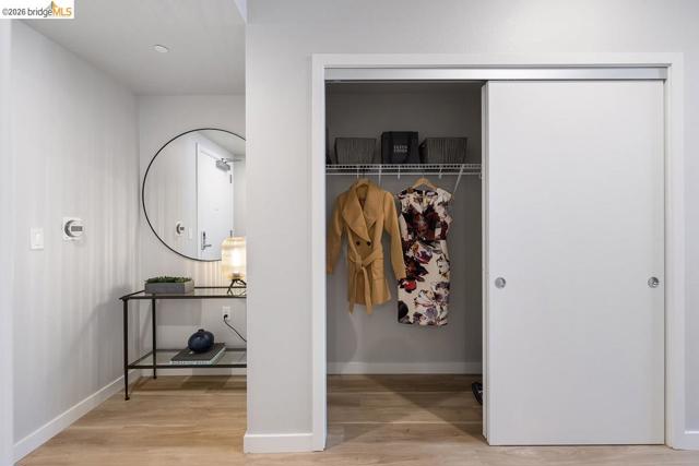 Now Selling at Caspian Brooklyn Basin. Discover modern waterside living in this thoughtfully designed JR 1-bedroom with a separate sleeping room, slider, and closet, a 1-bathroom condo, spanning approximately 550 sq ft. Located in one of Oakland’s most exciting new communities, this home offers a rare chance to own in a vibrant, amenity-rich setting. The open layout features sleek finishes, a well-equipped kitchen with Samsung stainless steel appliances, quartz countertops, and modern cabinetry. High-efficiency dual-pane windows frame the bright living area, while the bathroom includes quartz counters and Grohe fixtures. Includes in-unit washer and dryer. Caspian residents enjoy a fitness center, a dedicated co-working space, landscaped courtyards, a game room, and rooftop lounges with panoramic views. Situated on Oakland’s revitalized waterfront at Brooklyn Basin, the community provides direct access to parks, dining, and recreation, with Jack London Square, BART, and ferry service to San Francisco just minutes away. Includes one parking space. All images are representative of the development and may be of a similar unit.